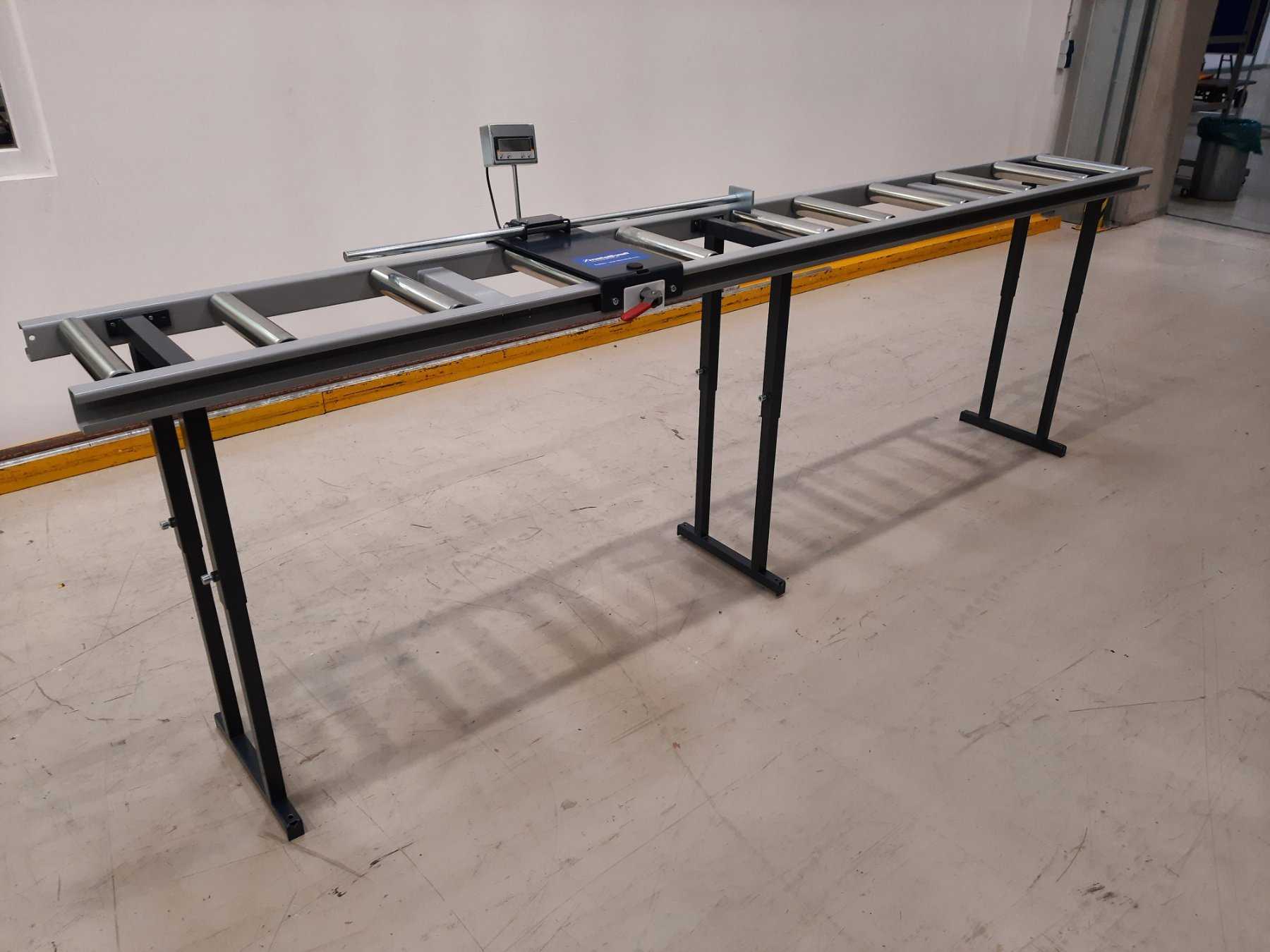 Rollen- und Messbahnsystem in leichter Konstruktion mit einer Tragkraft von 100 kg pro Meter Rollenbahn