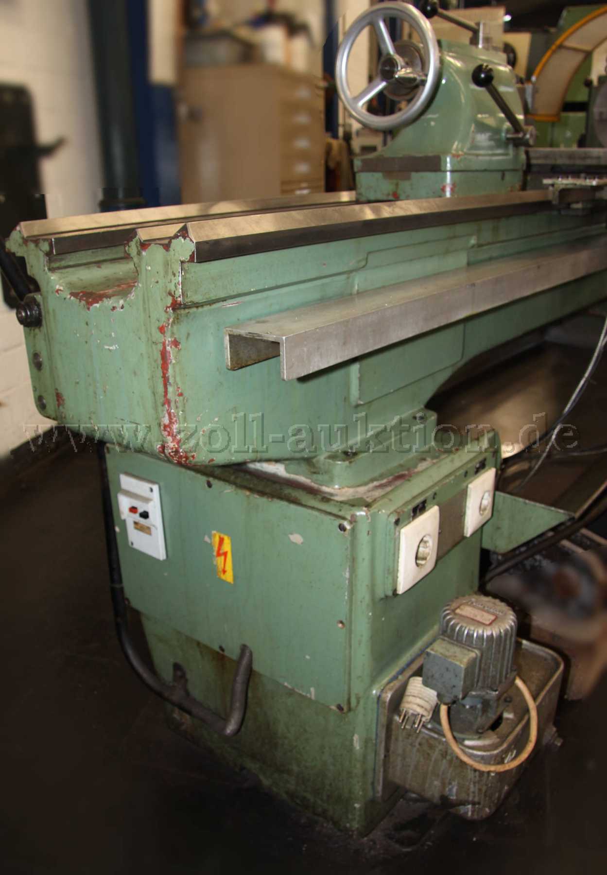 Der Auktionsartikel hat die durch jahrzehntelange Benutzung entstandenen typischen Gebrauchs-, Verschleiß- und Abnutzungsspuren in Form von Schmutzanhaftungen, Abrieb, Kratzern, Farbabblätterungen und Rost im Drehbereich sowie der Aufständerung. Die Maschine wird so, wie auf den Fotos erkennbar, angeboten.