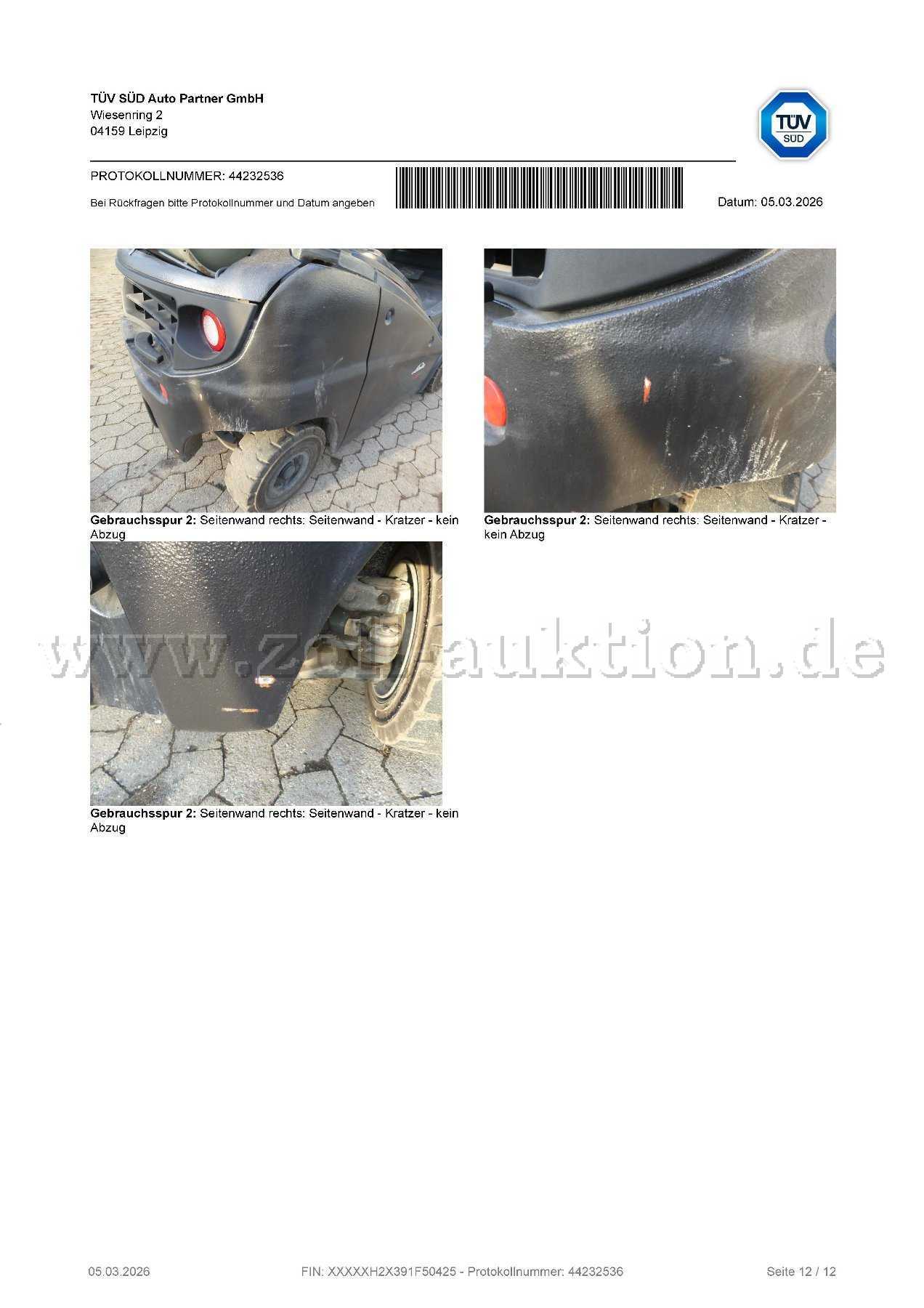 Das Fahrzeug weist deutliche alters- und nutzungsbedingte Gebrauchsspuren, wie zuvor Beschrieben auf.