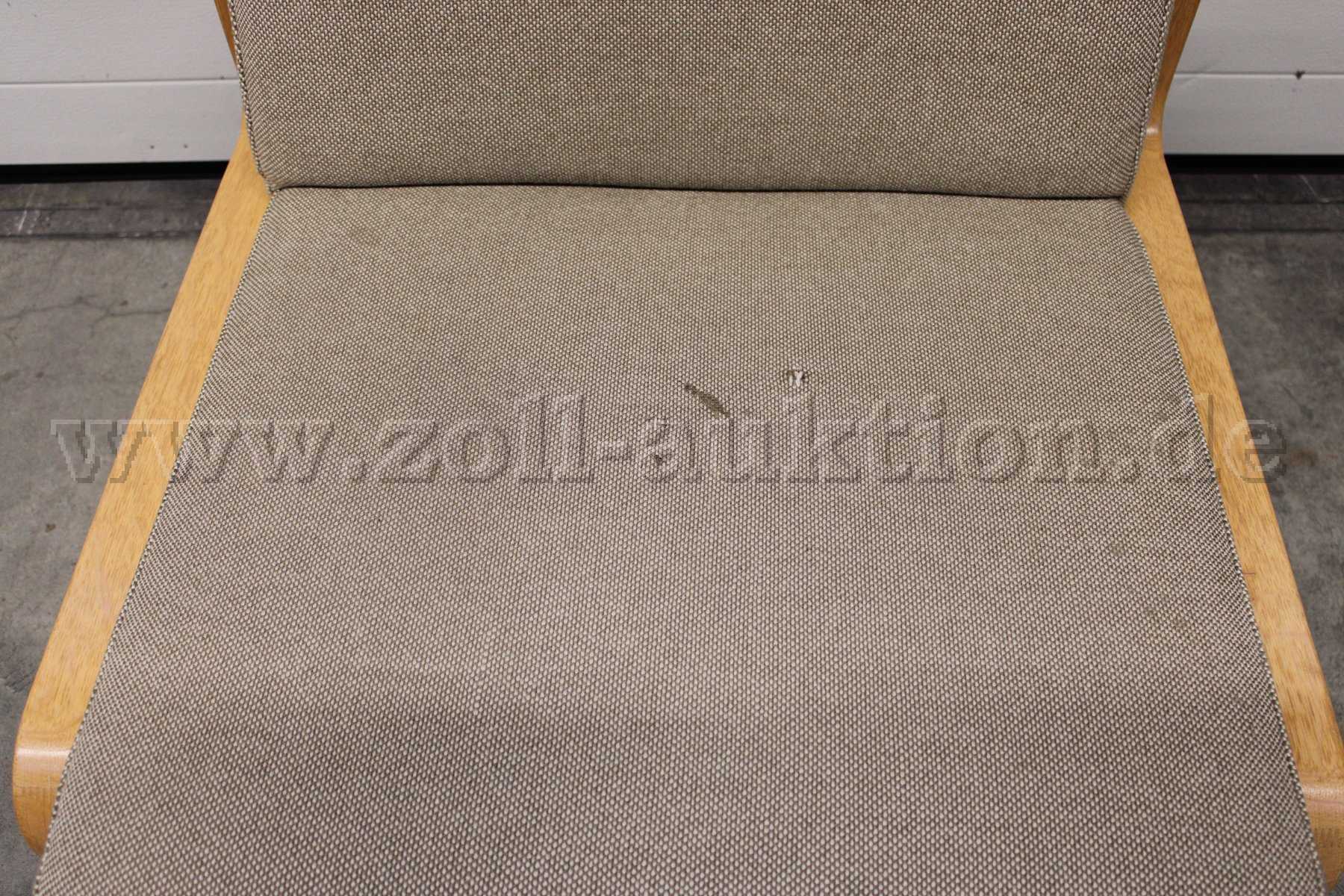 - Ausführung: Sitz und Rückenflächen aus Stoff, Holzgestell