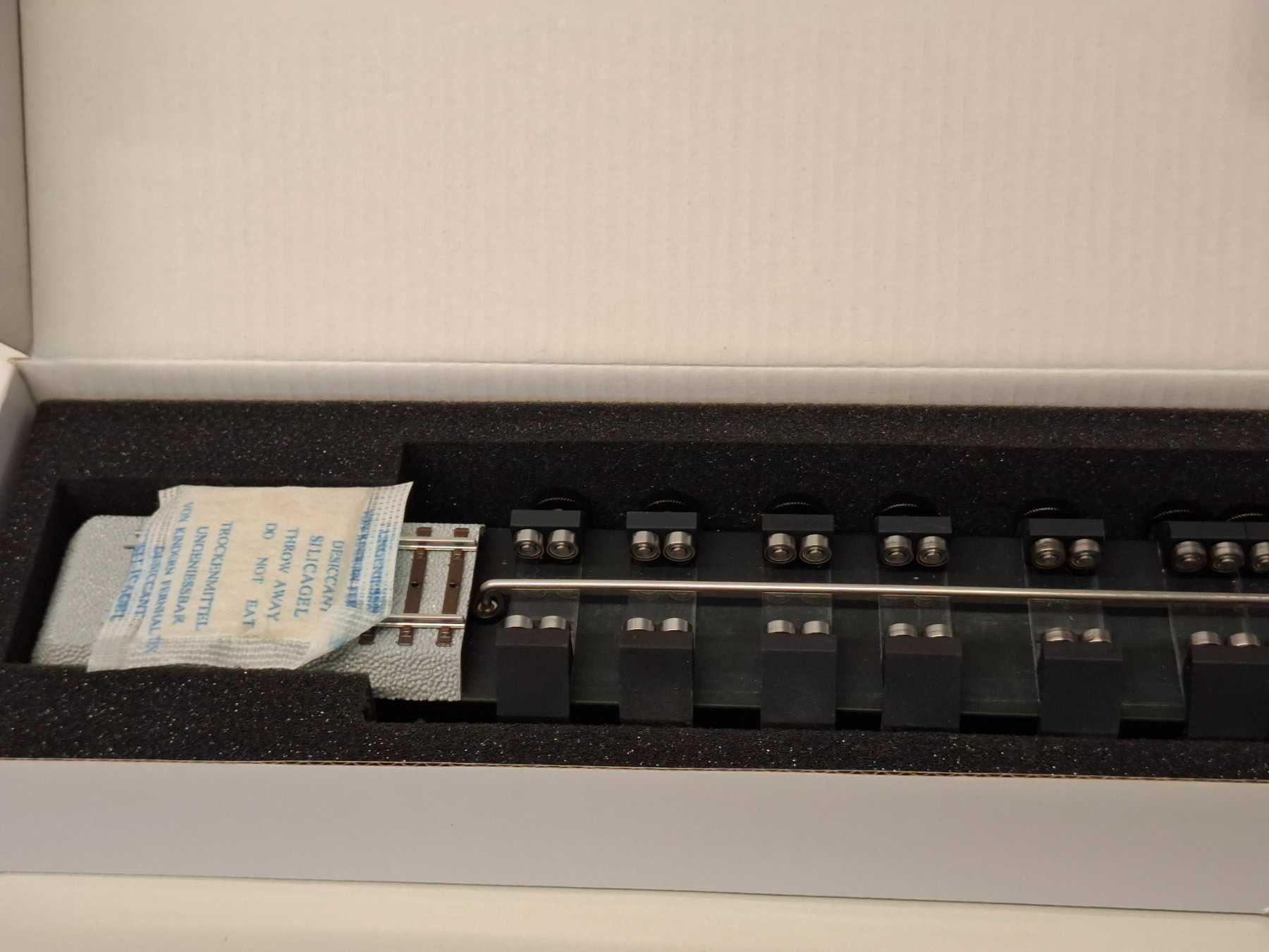Kuppelachsen. Auch für Big Boy geeignet. 8 verstellbare Rollenbockpaare mit je 4 Kugellagern. Länge: 520