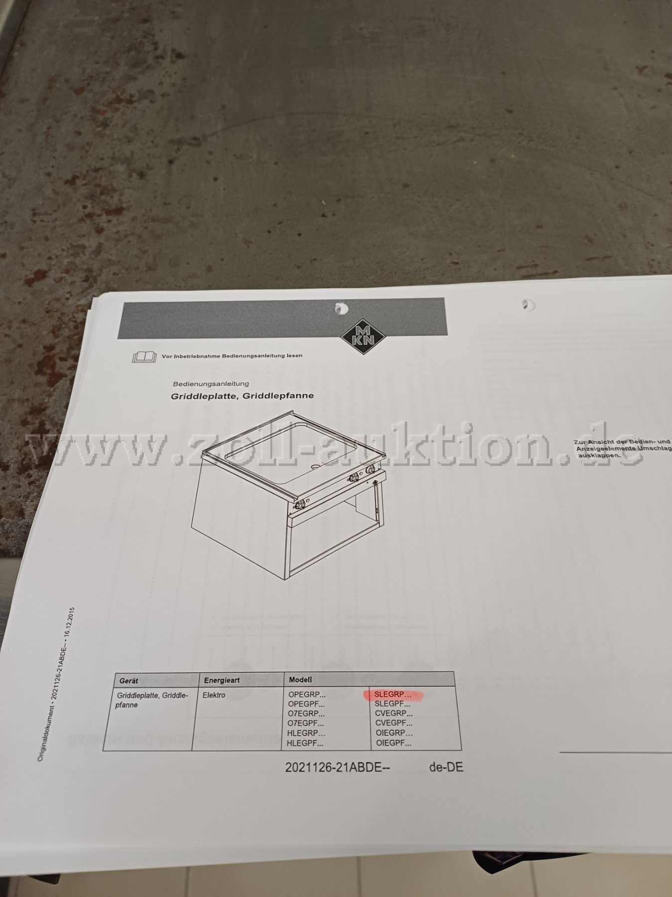Modell MKN SLEGRP (genauere Informationen Bild 4); CE Kennzeichen vorhanden; Anschluss 7,2 kW / 400 V