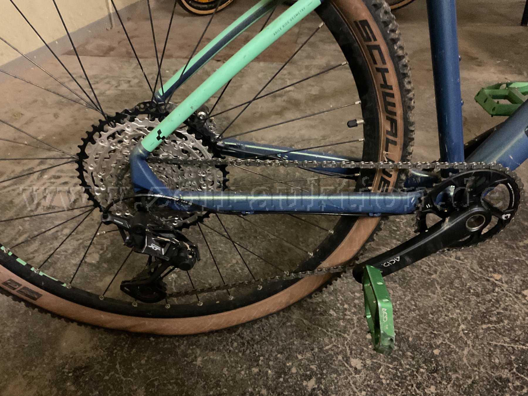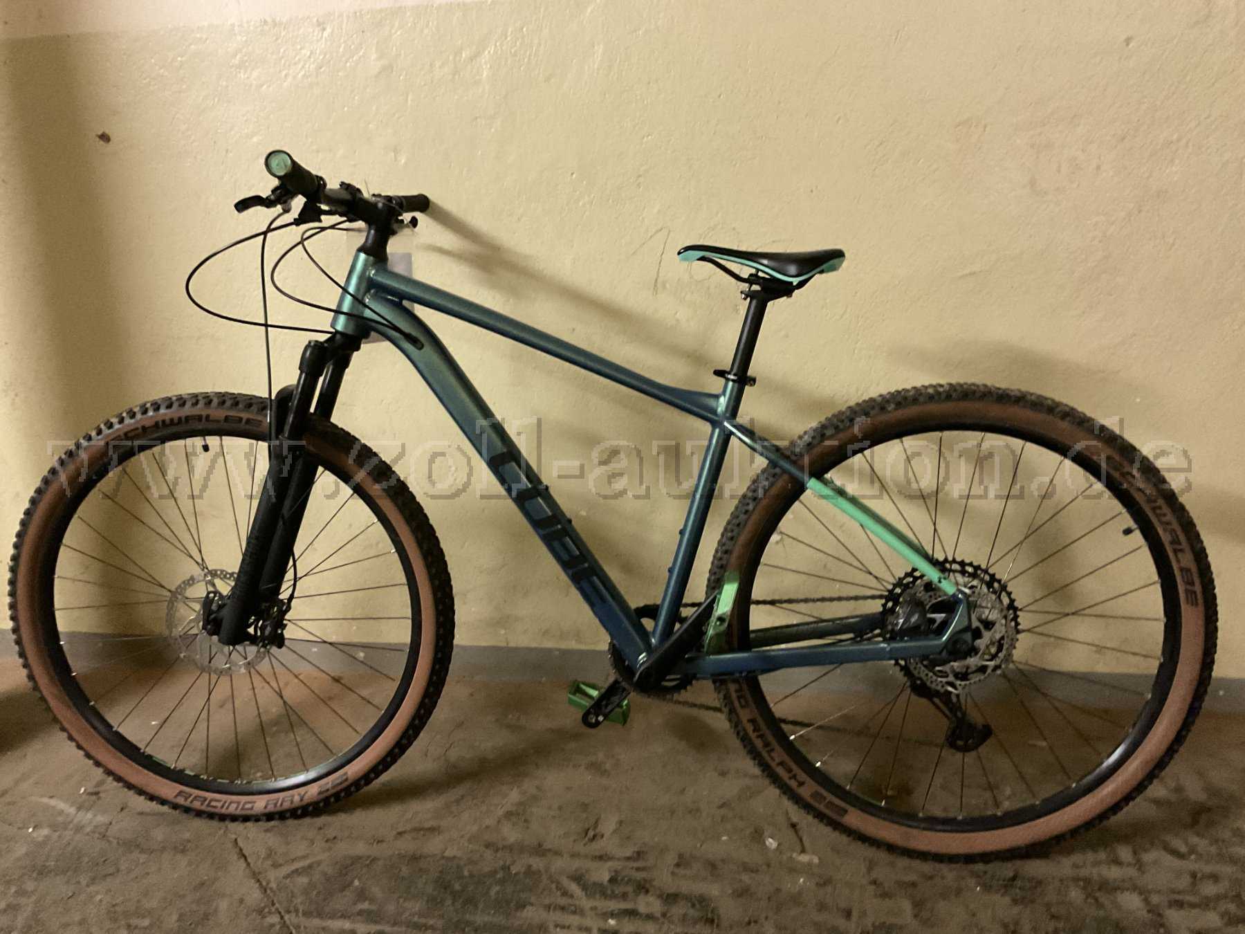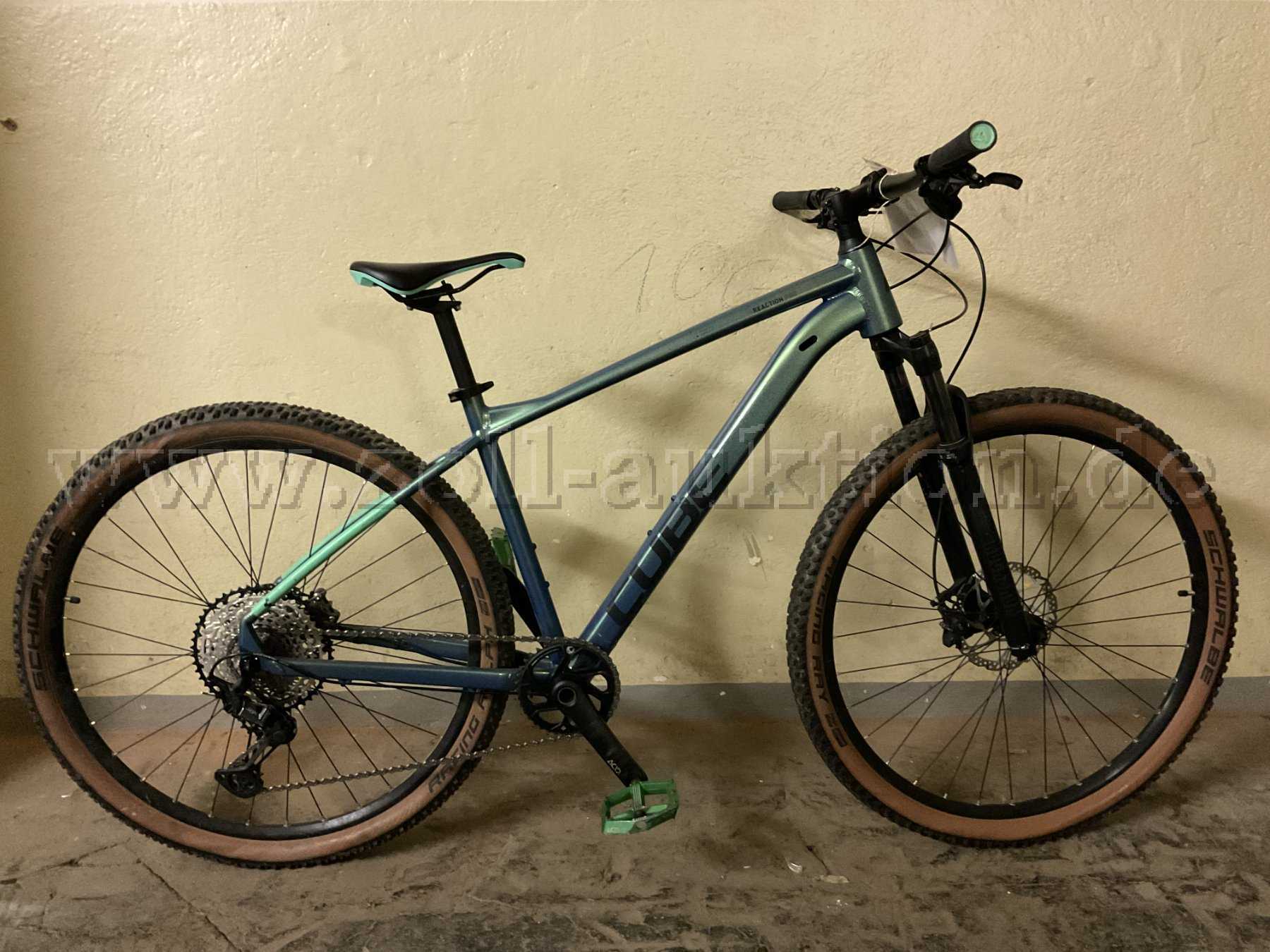 MTB der Marke "CUBE" Reaction Pro Aluminium Lite, 29Zoll, Rahmengröße L, Farbe: blau-grün-metallic, Schaltung: Shimano Deore XT (hinten), SRAM 38T Eagle Technology X-SYNC 2 (vorn), Bremse: Shimano Deore (hinten und vorn), Bereifung: Schwalbe Racing Ray 29x2.25, optischer Zustand sehr gut mit minimalen Gebrauchsspuren (Bowdenzugabdeckung auf einer Seite fehlt).
