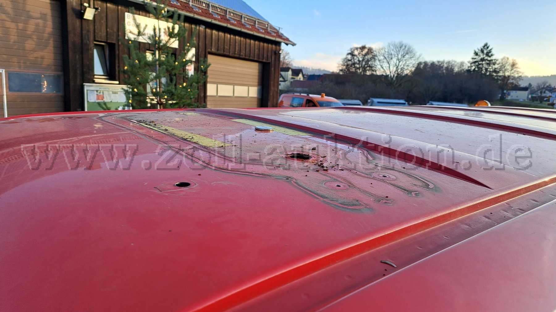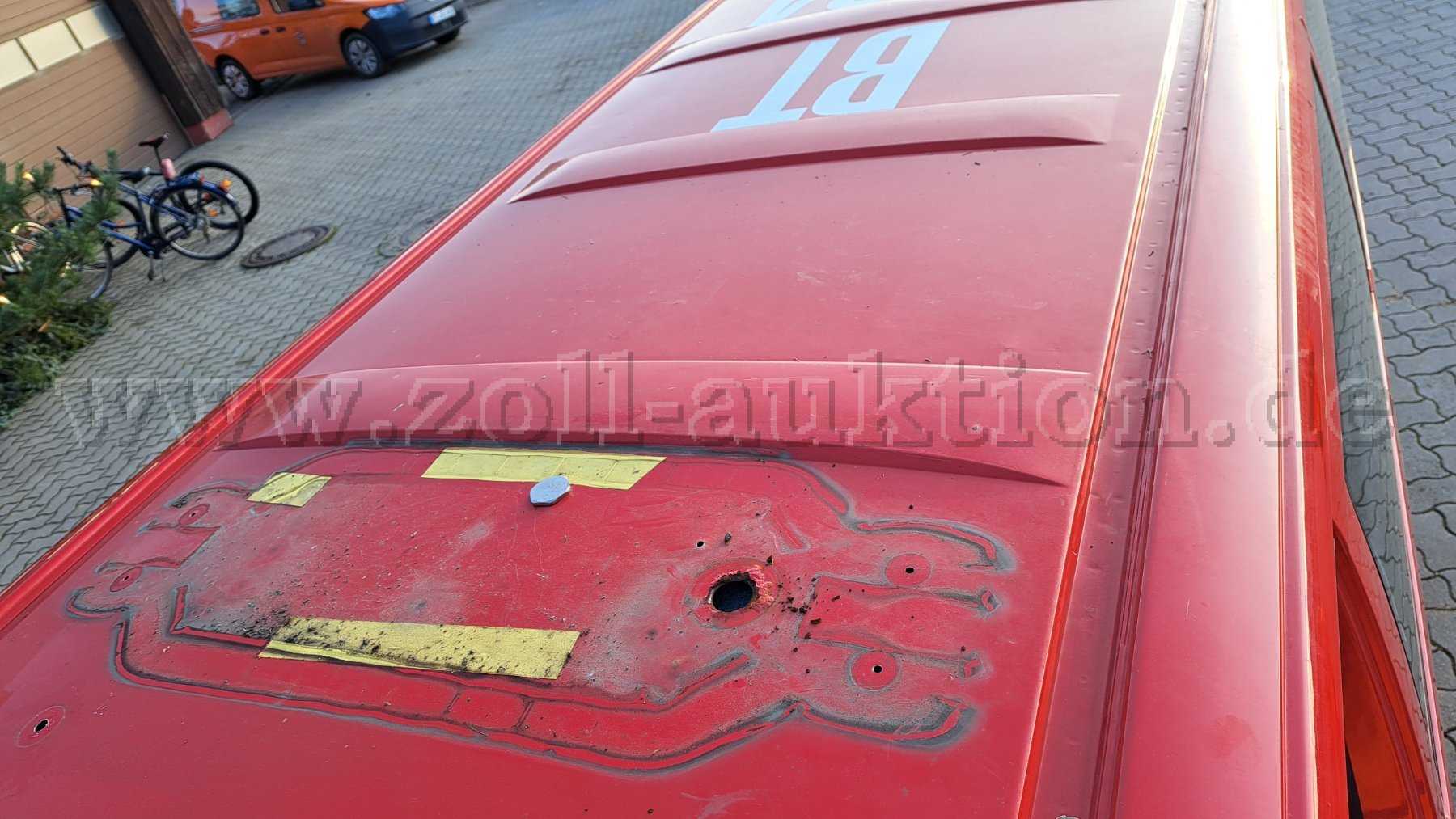 Im Fahrzeugdach befinden sich Löcher, der demontierten Sondersignalanlage.