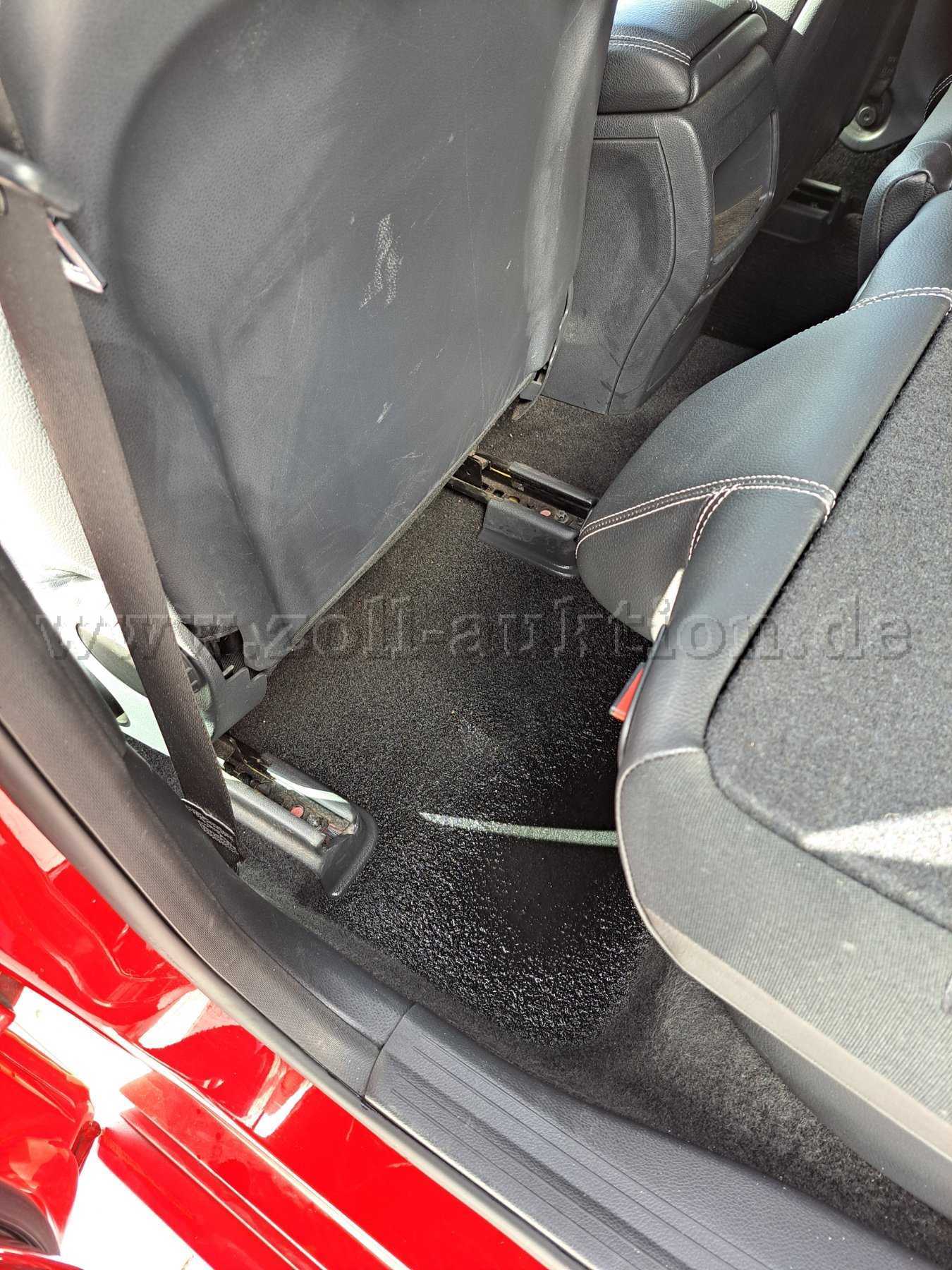 - Unklarer Wassereintritt, mit Wasseransammlung im Fußraum hinter dem Fahrersitz (siehe Bild)
