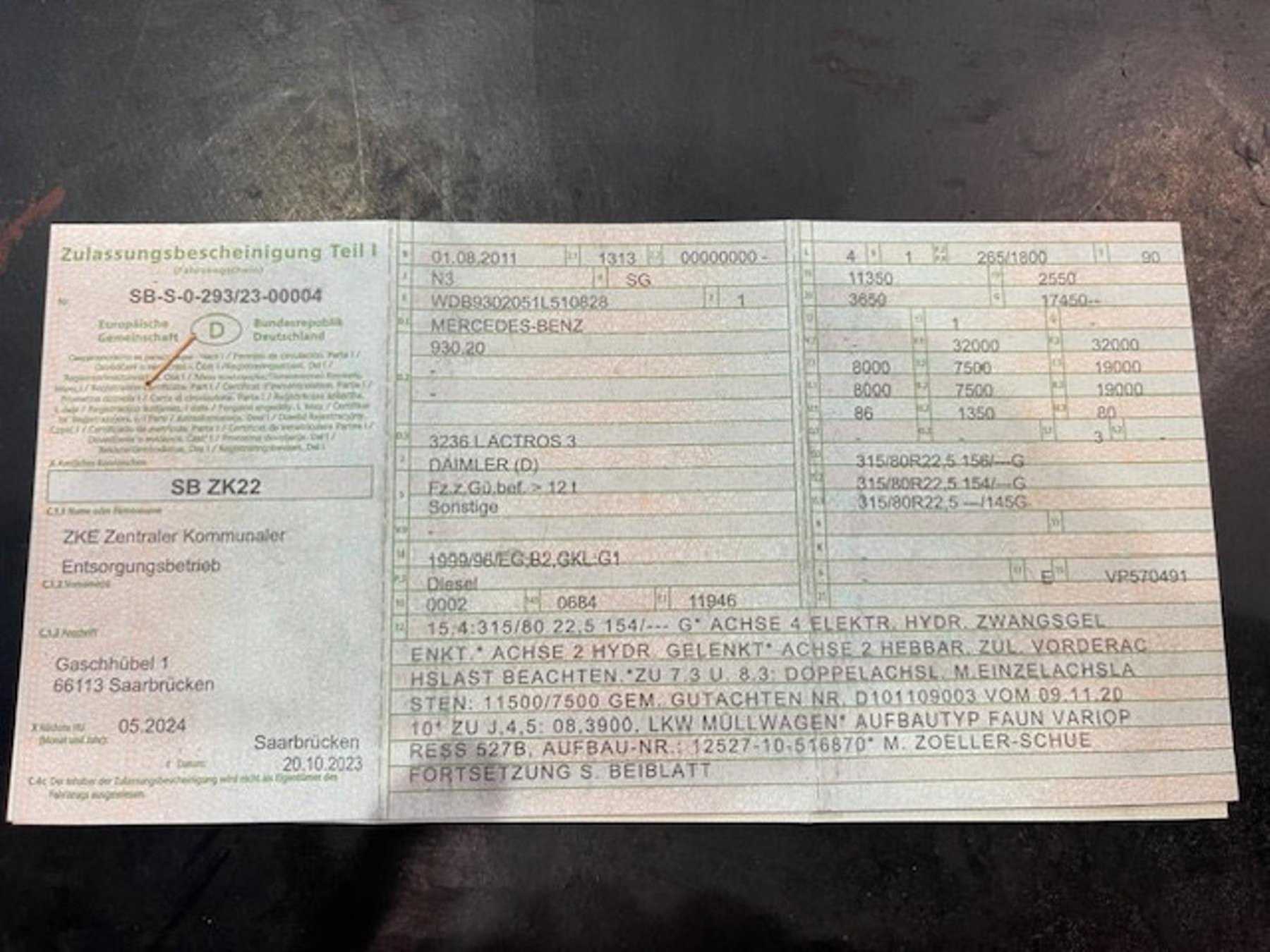 Fzg.Ident / Fabr.-Nr.: WDB9302051L510828