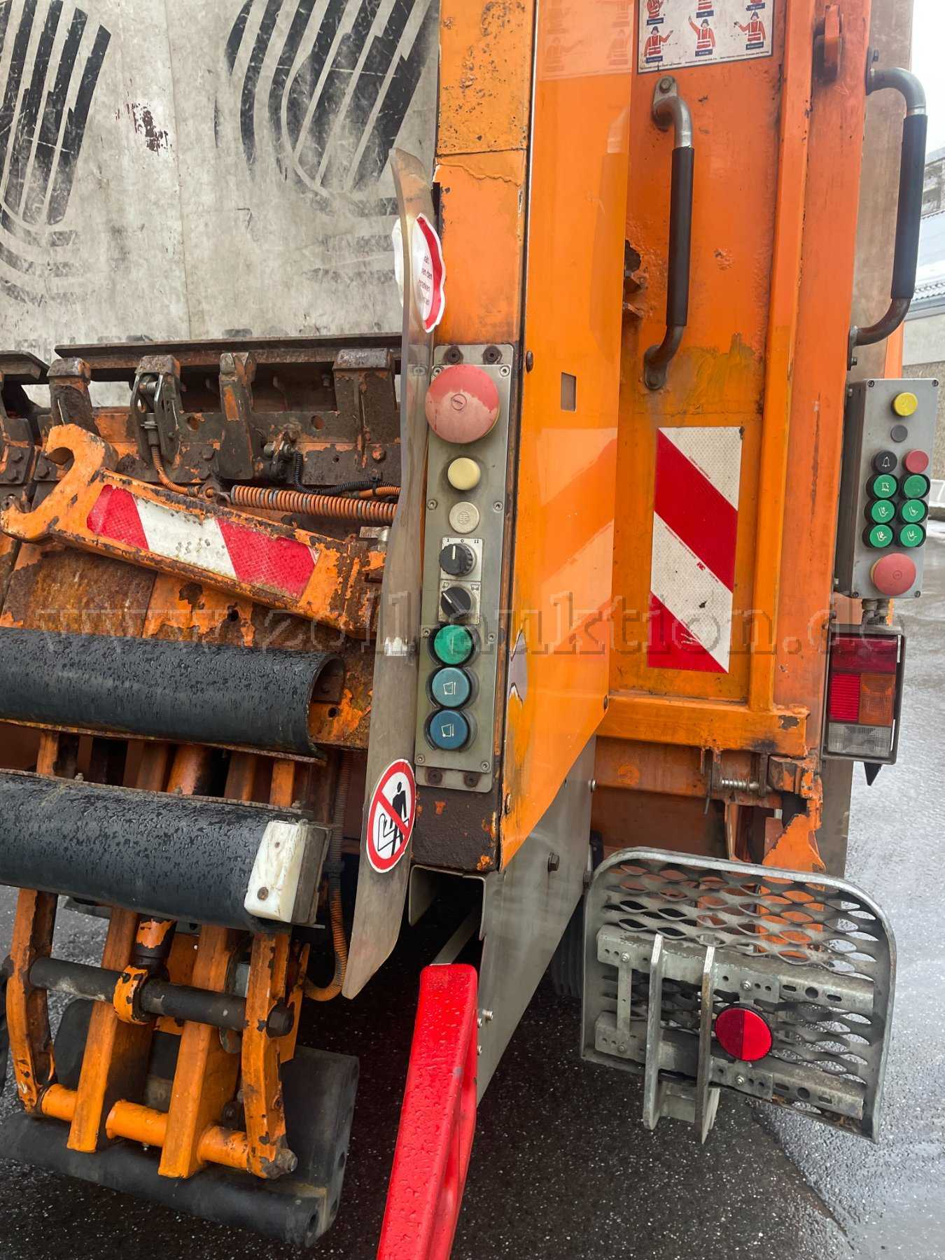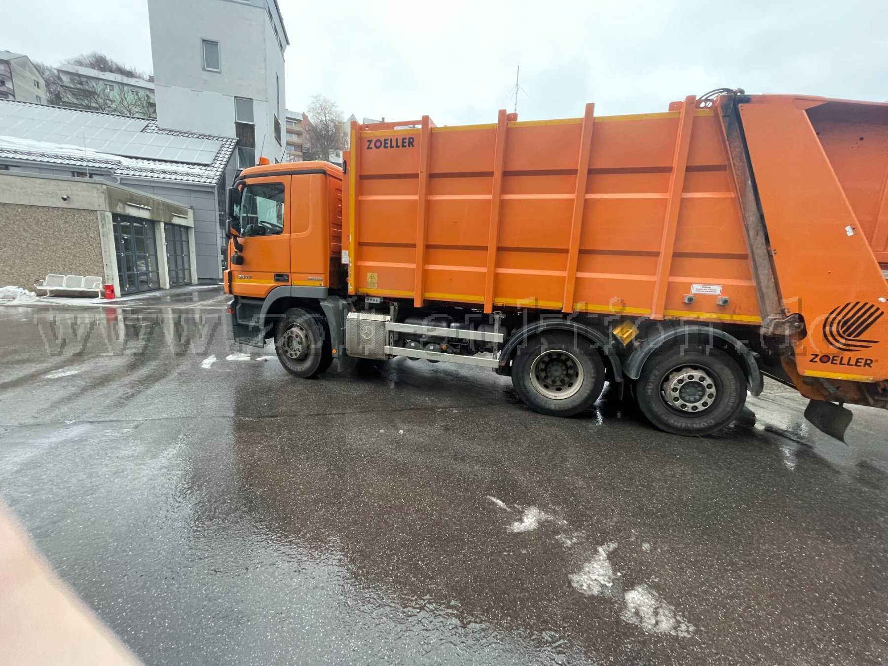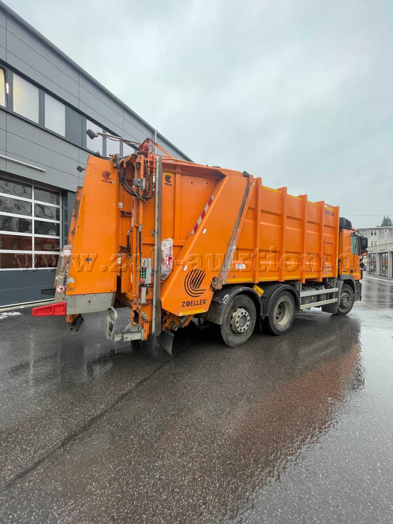 Versteigert wird ein ausrangierter Mercedes Actros 2532 Bluetec EEV samt Müllsammelaufbau und Lifter.