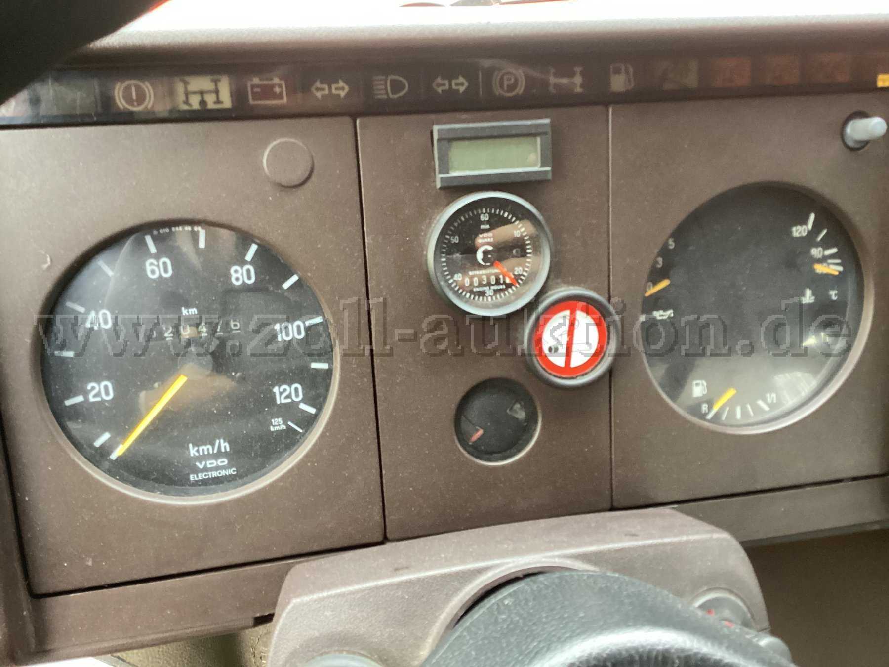 Montagelöcher im Armaturenbrett und im Aufbau sind aufgrund ausgebauter Gerätschaften vorhanden.