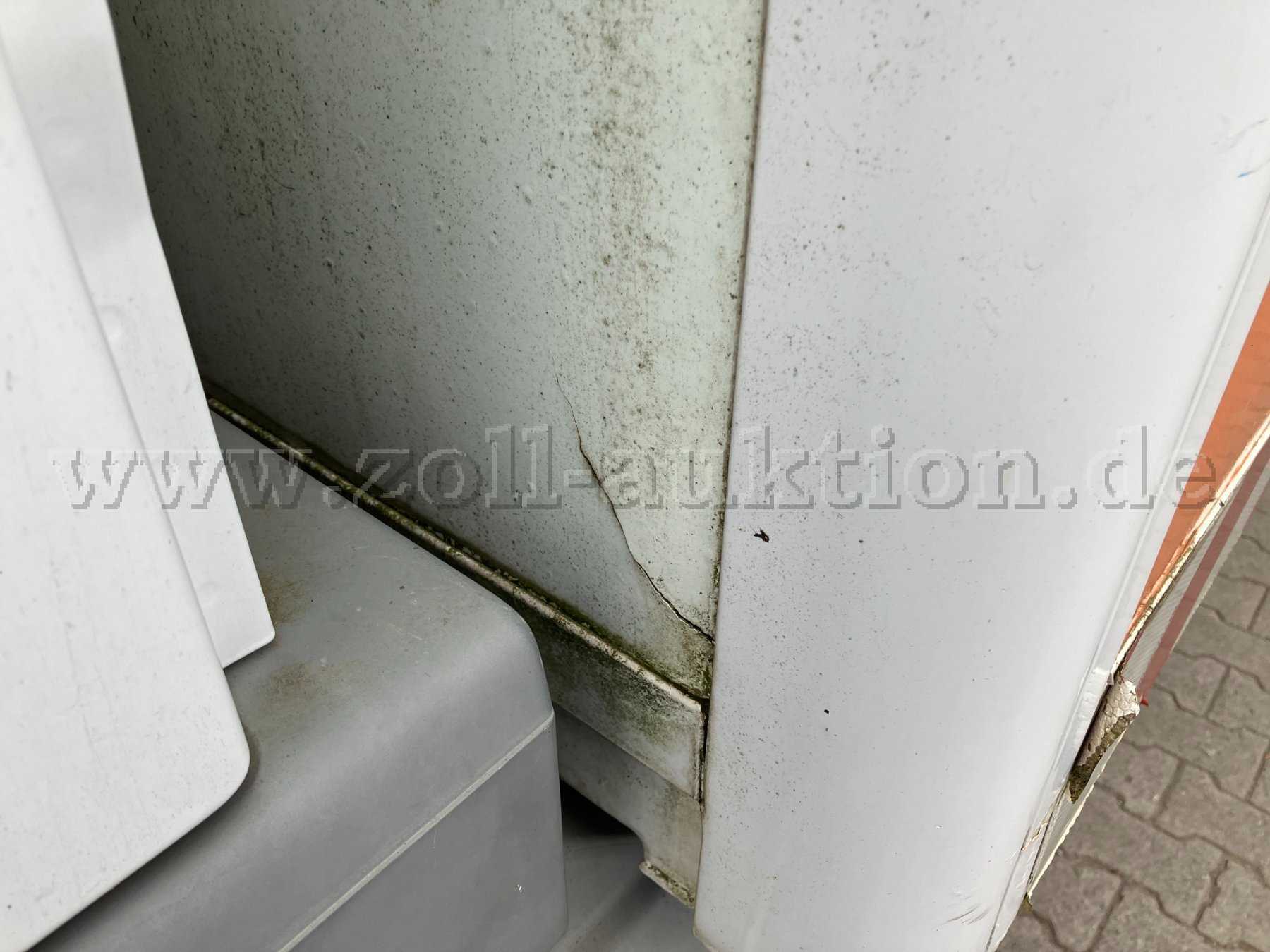 Der Aufbau und das Fahrgestell haben Risse, Beulen und Korrosionsschäden.