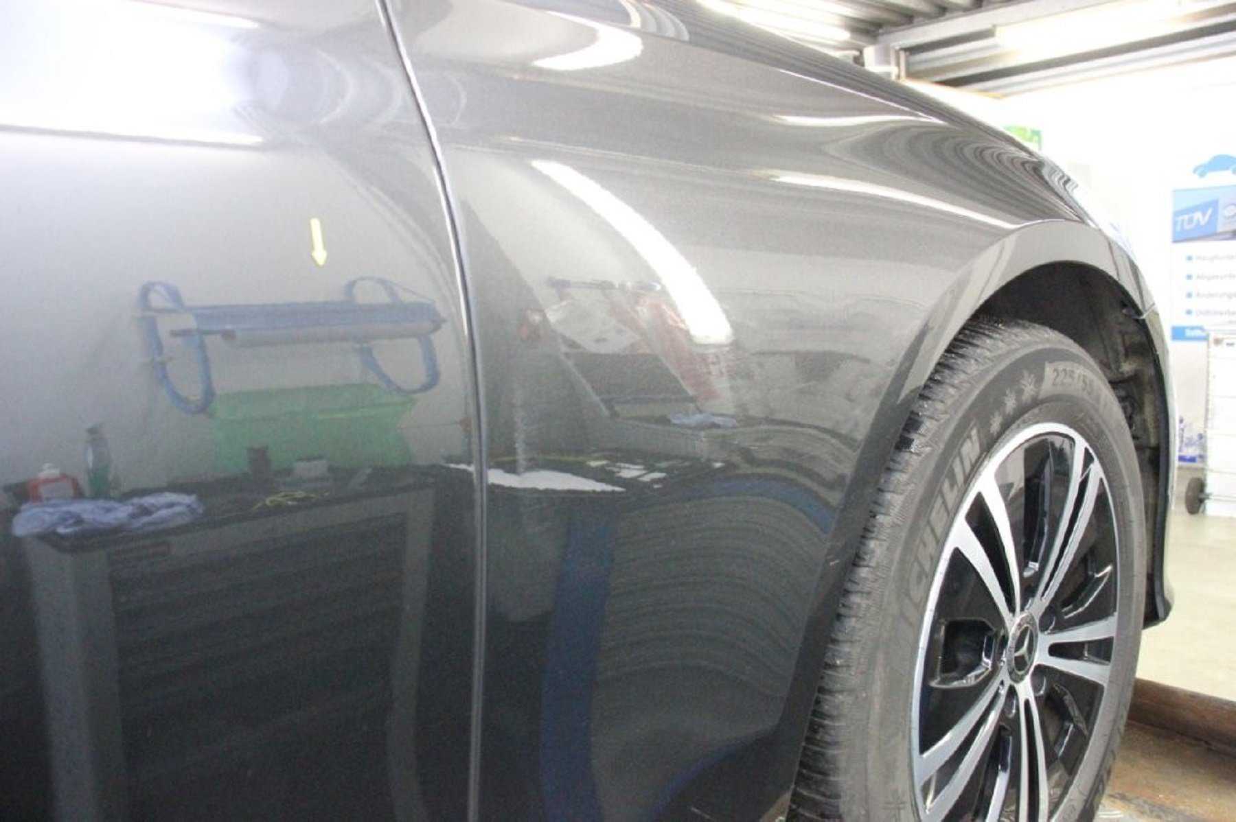 Bei der auftragsbezogenen optischen Überprüfung fanden sich an den einsehbaren Bereichen, soweit ohne Zerlegung feststellbar, keine Hinweise bzw. erkennbare Instandsetzungsspuren infolge eines reparierten Vorschadens.Im Zuge der dezidierten Vorschadenprüfung wurde zur Beurteilung, ergänzend zur ausführlichen Inaugenscheinnahme, eine Lackschichtdickenmessung an den messbaren Bauteilen durchgeführt. Hinsichtlich der Messwerte wurden keine Abweichungen zu den herstellerseitig zu erwartenden Toleranzen bezüglich der Schichtdicken festgestellt. Steinschlagschäden im Vorderwagenbereich. Frontscheibe gebrochen. Rechts vorne Felge oberflächlich verschrammt. Rechte Seite durchgängige Lackbeschädigung mit zusätzlichen Eindellungen/ Verformungen an Kotflügel und Tür vorne. Lackschäden Stoßfängerverkleidung hinten, Türen links. Service B fällig in 232 Tagen laut Anzeige. Keine reparierten Unfallschäden offensichtlich. Alters-, laufleistungs- und einsatzbedingt entsprechende Gebrauchsspuren.