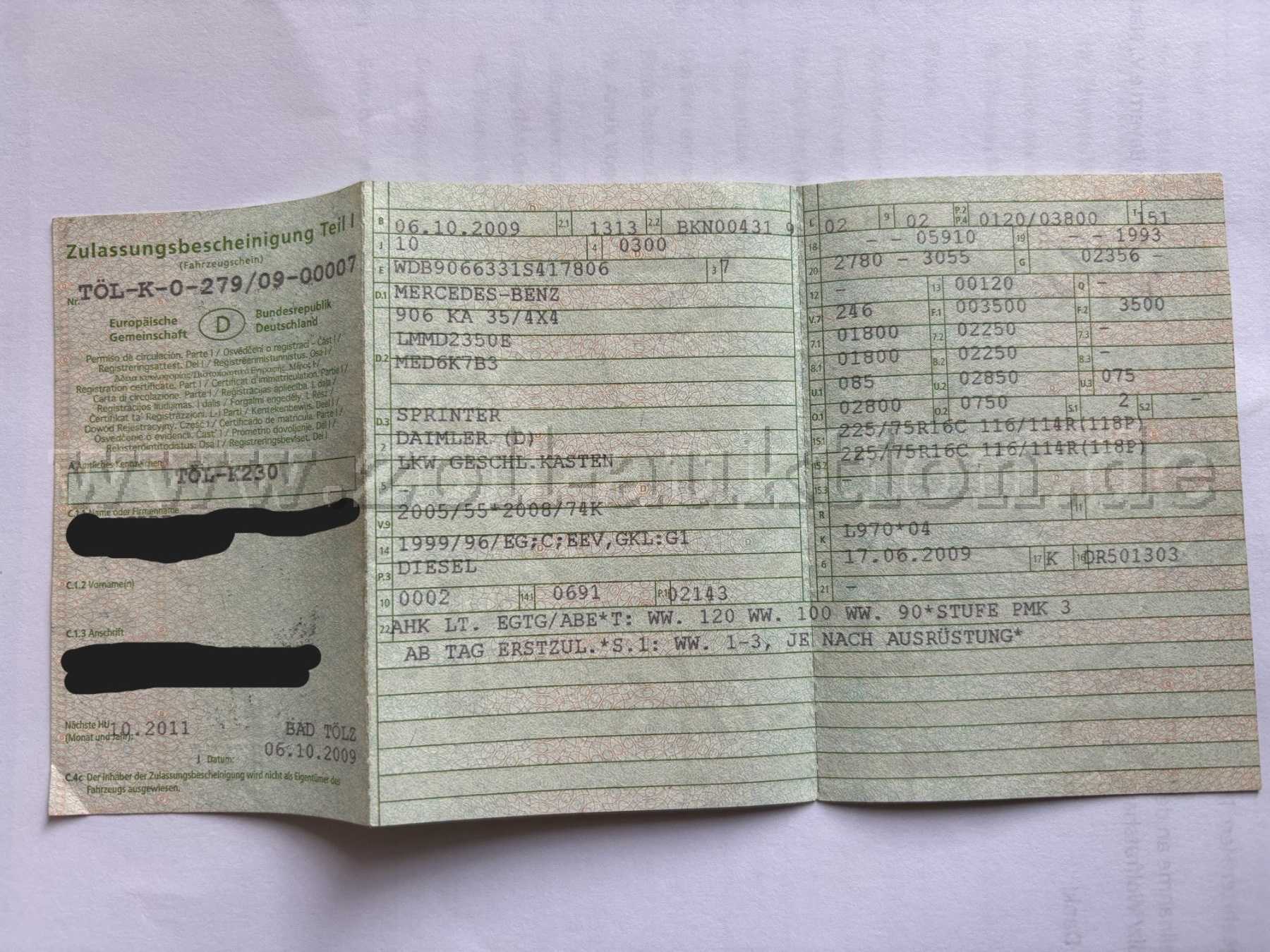 Zulässiges Gesamtgewicht: 3500 kg