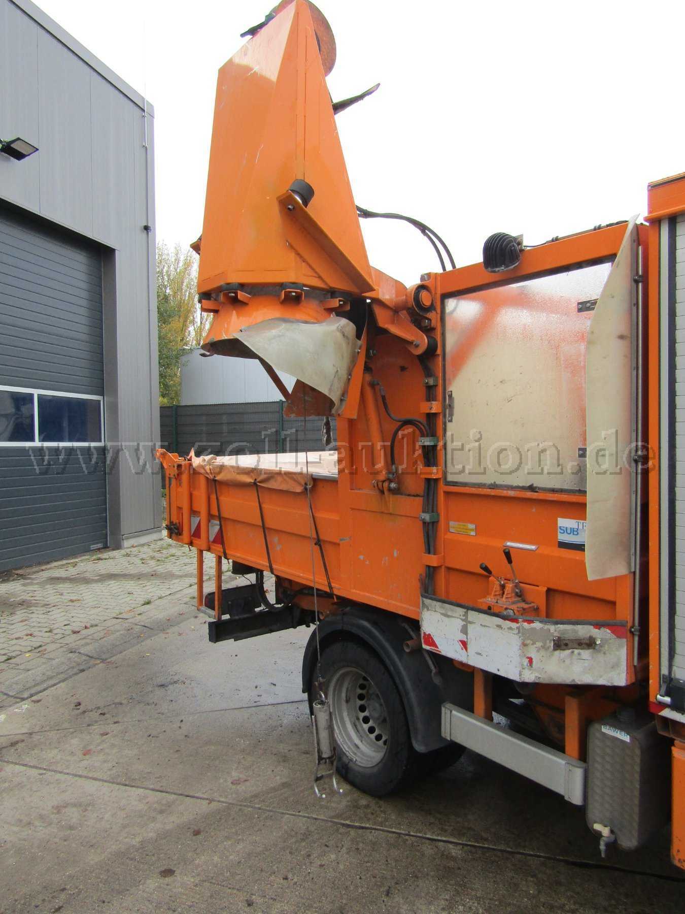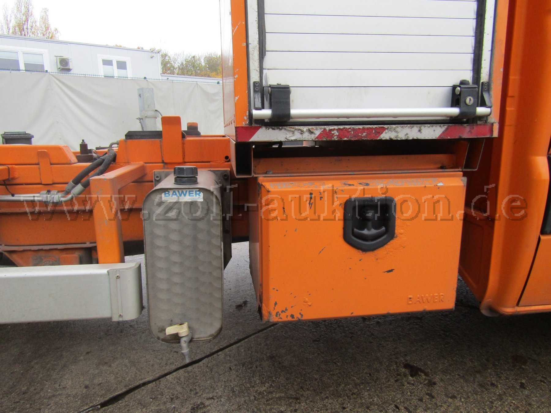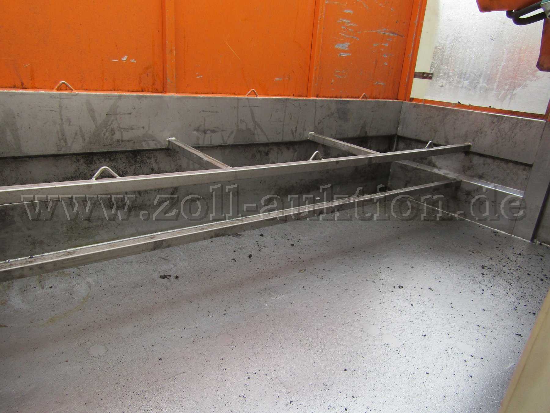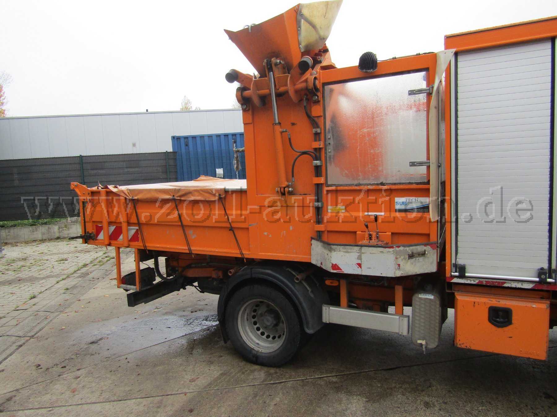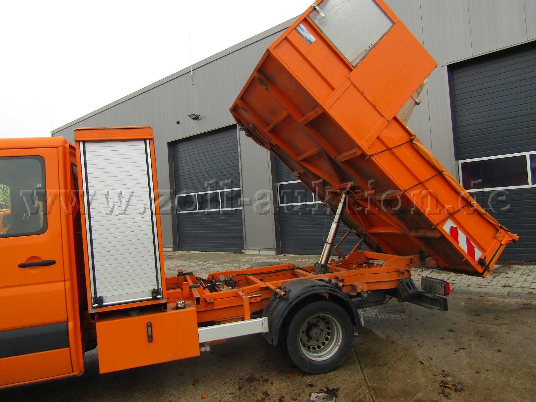 1-Mann-Bedienung, hydr. regelbare Sinkkastenkippvorrichtung, hydr. Sinkkastenseilzugeinheit, Seilwinde, Steuergerät, Greifhaken, Hydraulikantrieb über Elektromagnetkupplung, Ladefläche aus Edelstahlverschleißboden, Aufbau hydraulisch kippbar, autom. Hubbegrenzung, 100 Liter Hydrauliktank,