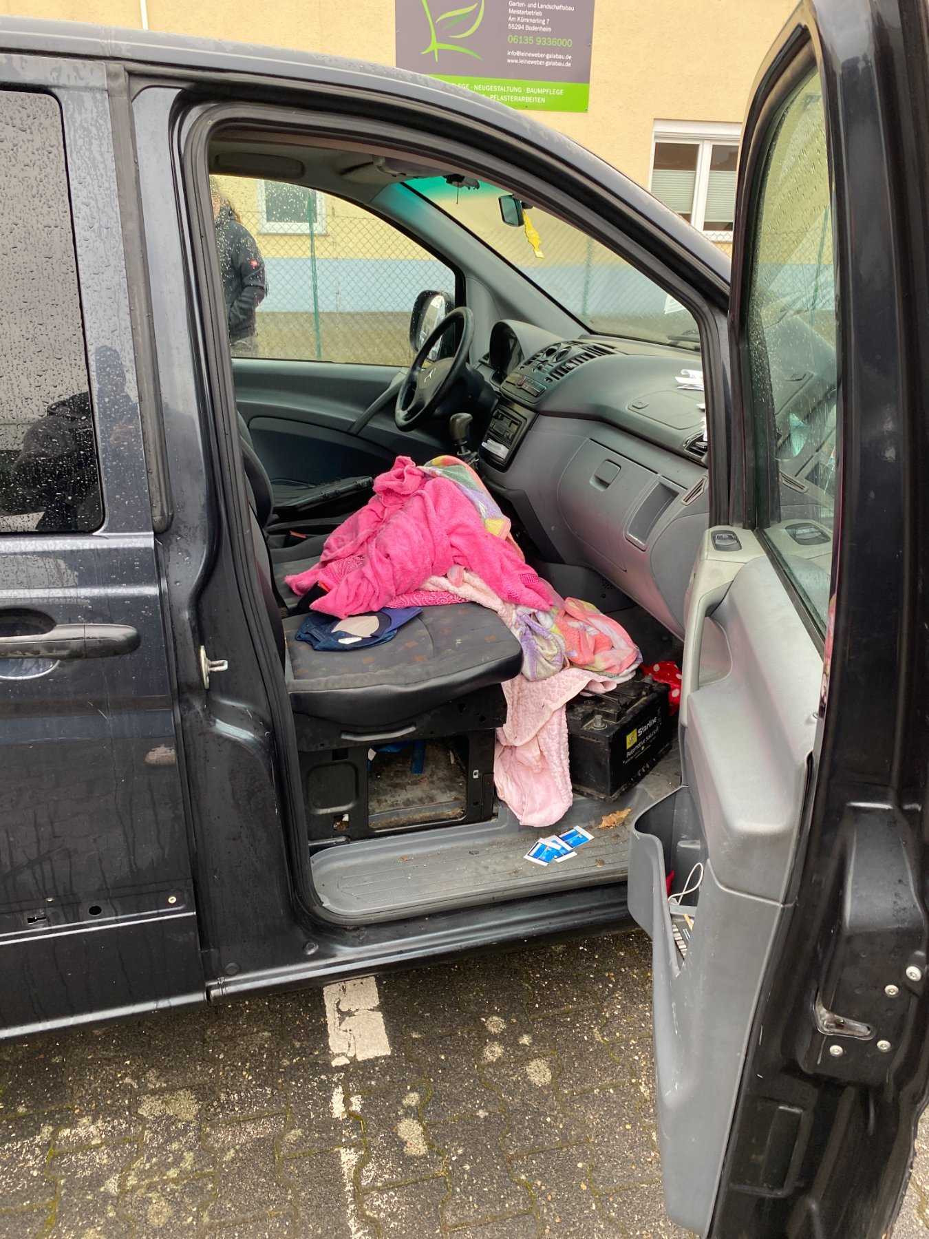 Der Fahrzeuginnenraum ist dreckig und verkratzt und weist ebenfalls alltägliche Gebrauchsspuren auf. Das Fahrzeug wurde zuvor als Handwerkerfahrzeug genutzt. Das Fahrzeug hat ein Schaltgetriebe. Es verfügt über eine Heizung, ein Radio, ein CD-Laufwerk und elektrische Fensterheber vorne sowie elektrisch verstellbare Außenspiegel. Weitere Details können hier ebenfalls den Bilder entnommen werden. Die Funktionen der verschiedenen Ausstattungen konnten hier nicht überprüft werden.