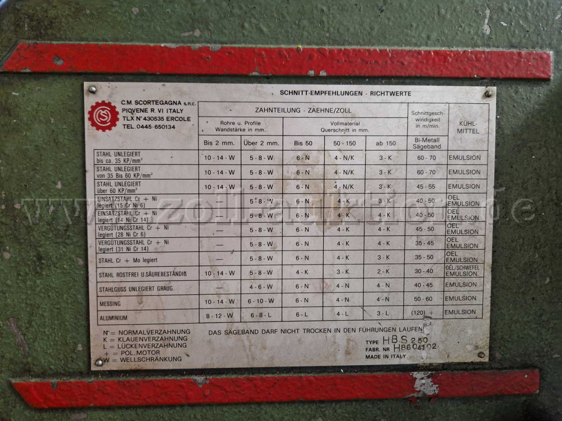 Altersbedingte Gebrauchsspuren wie Kratzer und Verschleiß lackierter Oberflächen und Schmierstoffrückstände an metallischen Oberflächen sind vorhanden (s. Beispielbilder, weitere auf Anfrage). Die Vorschubeinrichtung ist sporadisch ohne Funktion. Das Schnittbild ist bei großen Durchmessern nicht ganz rechtwinklig. Das Sägeband ist benutzt und hat Verschleißerscheinungen. Drei neuwertige Universal-Sägeblätter sind vorhanden.