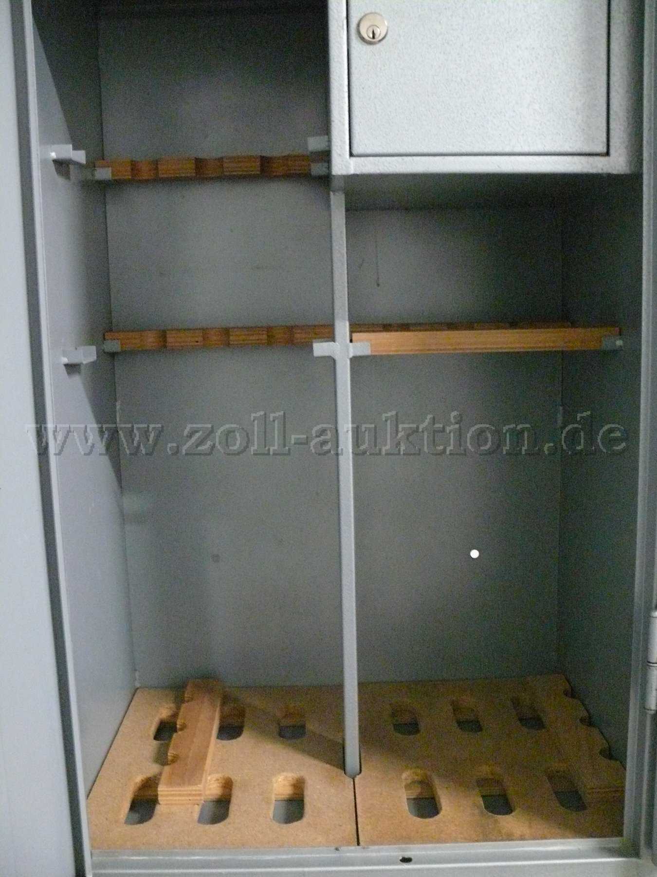 Der Metallschrank wurde ehemals als Waffenschrank genutzt, er entspricht nicht mehr den gültigen Sicherheitsstandards.
