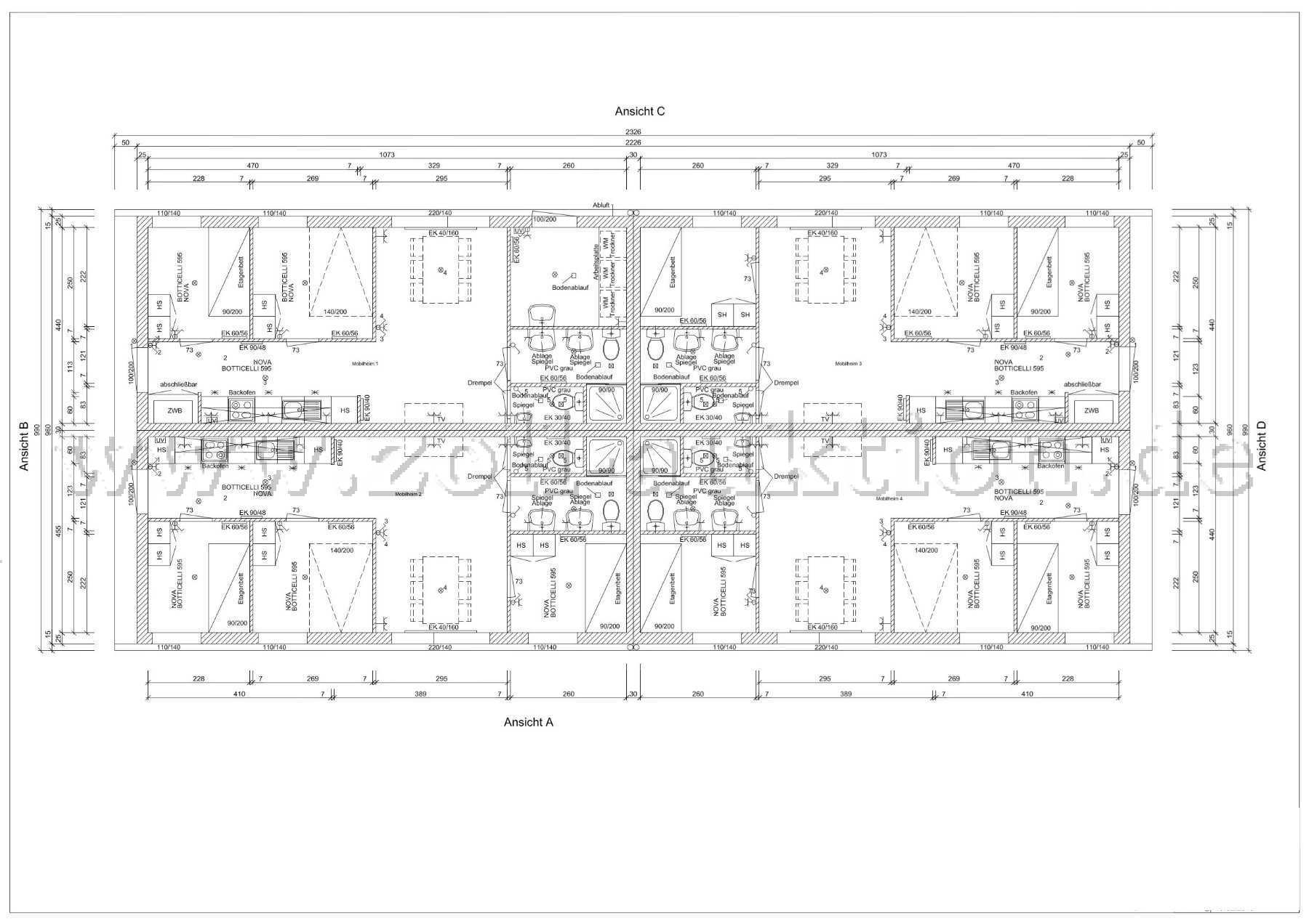 Ein Modulheimkomplex bestehet aus je 4 Einheiten in jeweils gleicher Zusammenstellung: