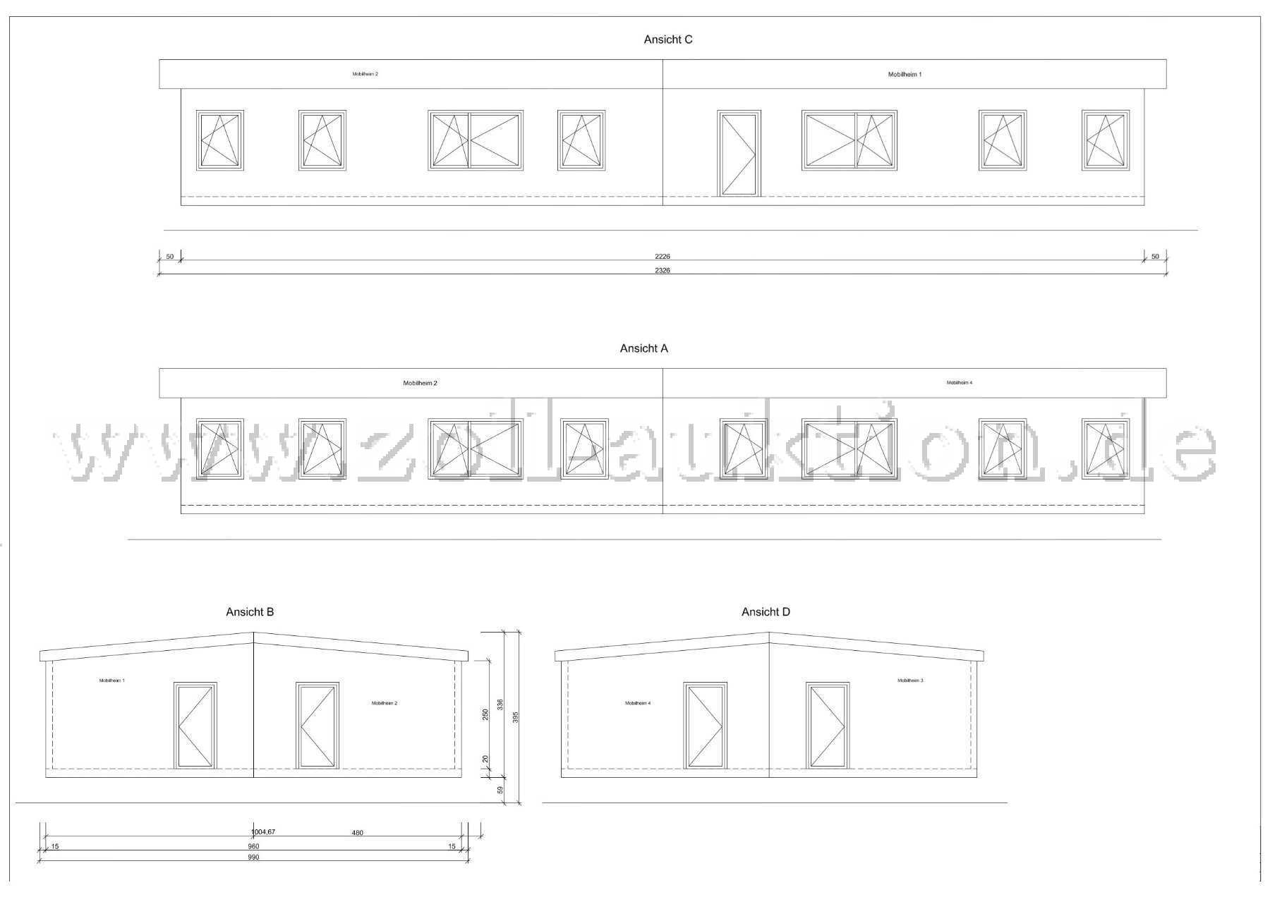Die Einheiten könnten unter Beachtung der gemeinsamen Nutzung der Kombitherme und der Außenverkleidung auch separat genutzt bzw. aufgestellt werden.