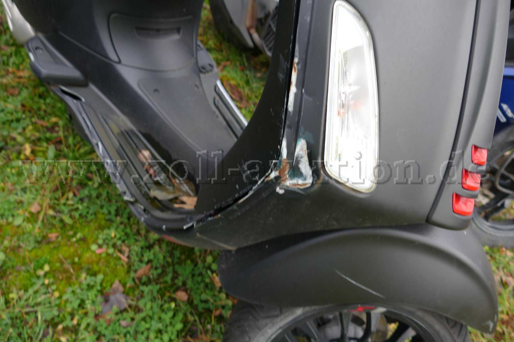 Das Fahrzeug weist altersbedingte Gebrauchs- und Abnutzungsspuren auf. Es weist Dellen und Lackschäden an der Verkleidung auf. Das Krad ist verschmutzt.