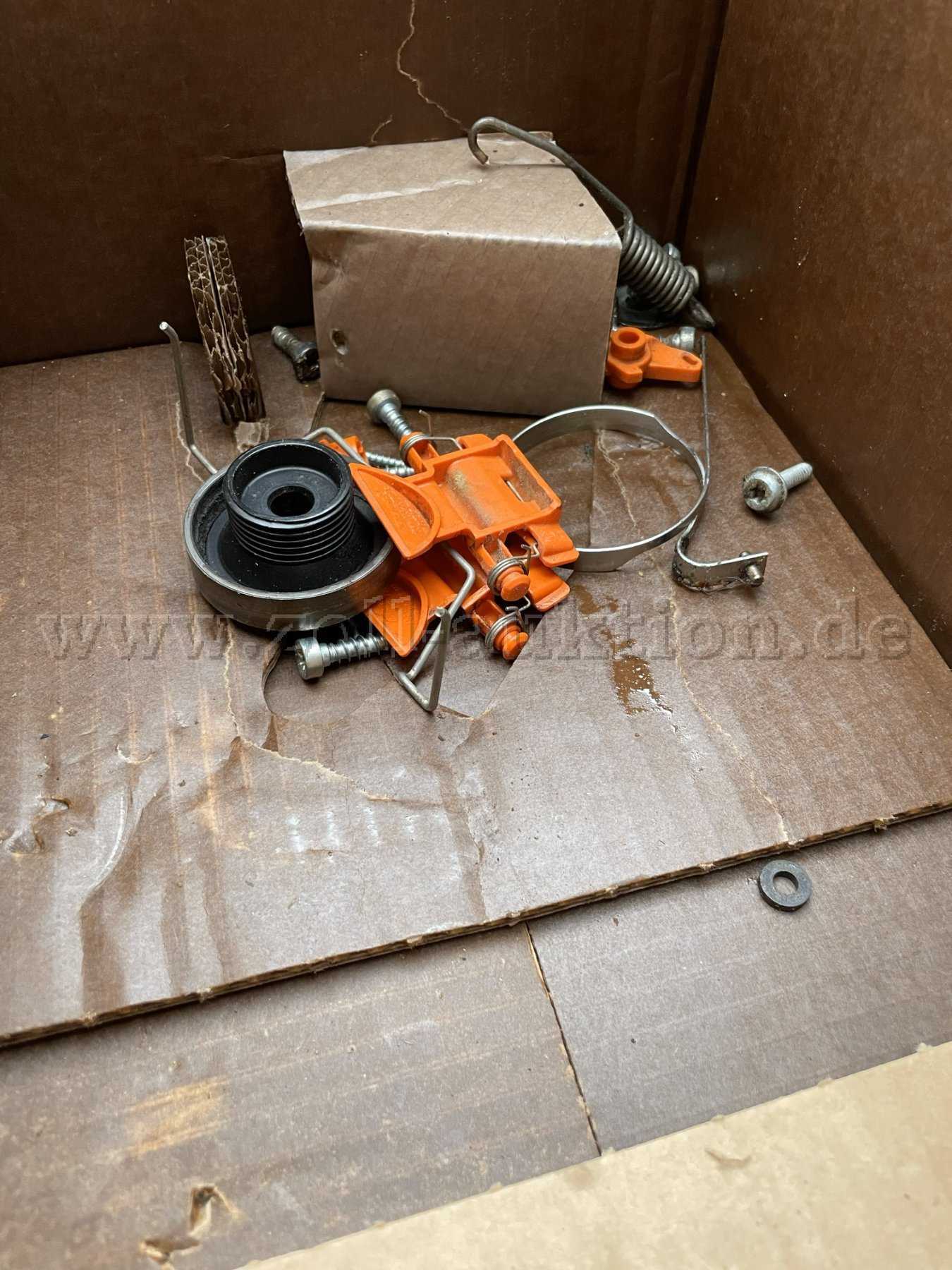 Die Säge war im Forstausbildungsbetrieb im Einsatz und wurde aufgrund eines Defekts ausgesondert.