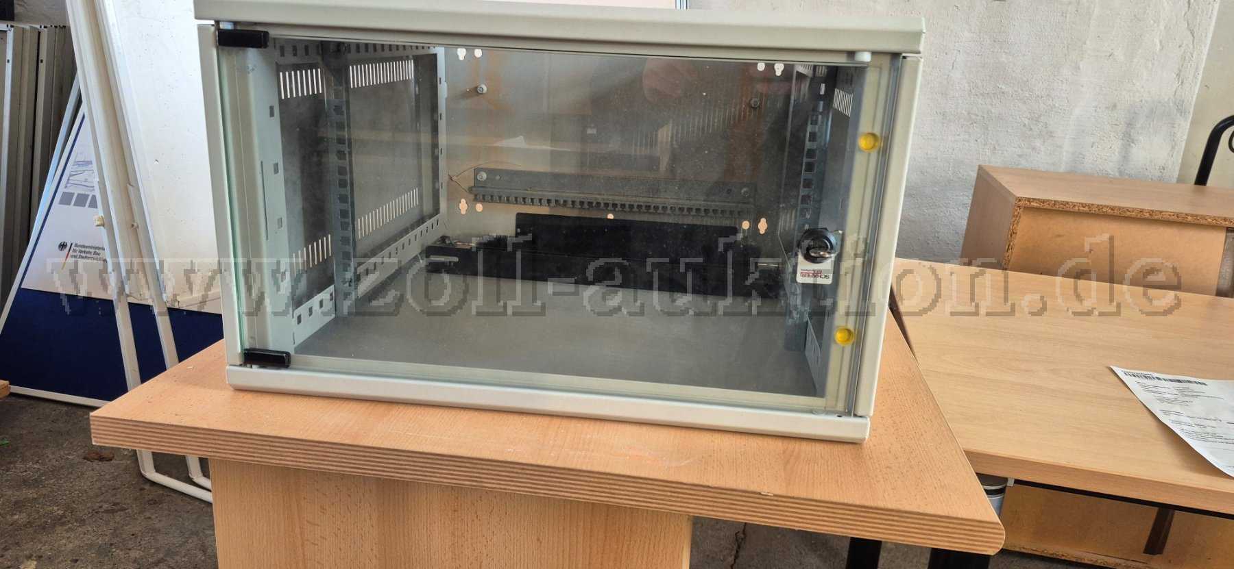 Angeboten wird ein gebrauchter Netzwerkschrank, eines unbekannten Herstellers, aus Metall, in der Farbe grau.