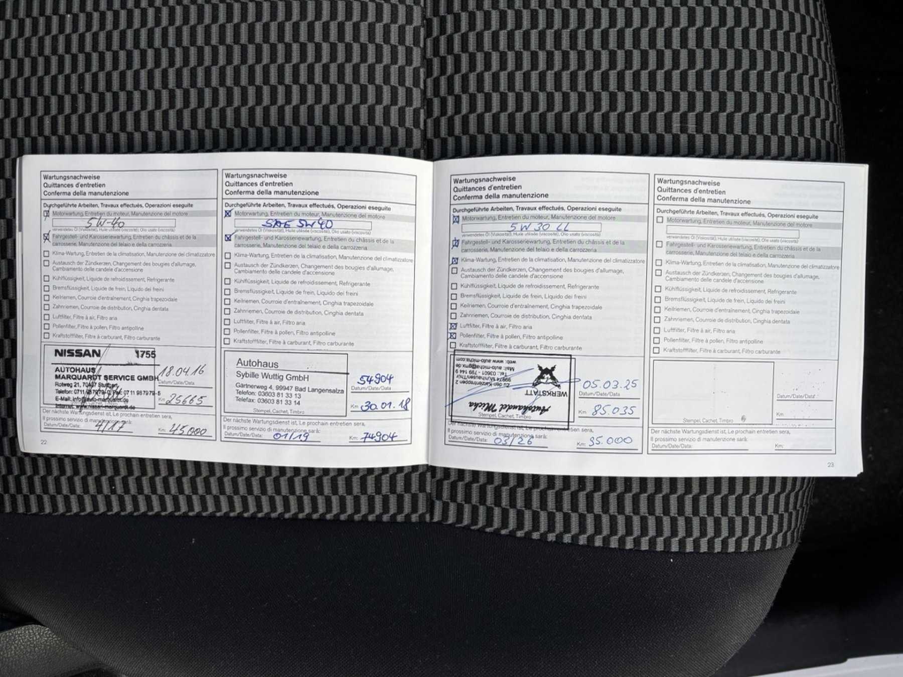 Letzter Service: 03/2025 bei 85035 km (gemäß Serviceheft)