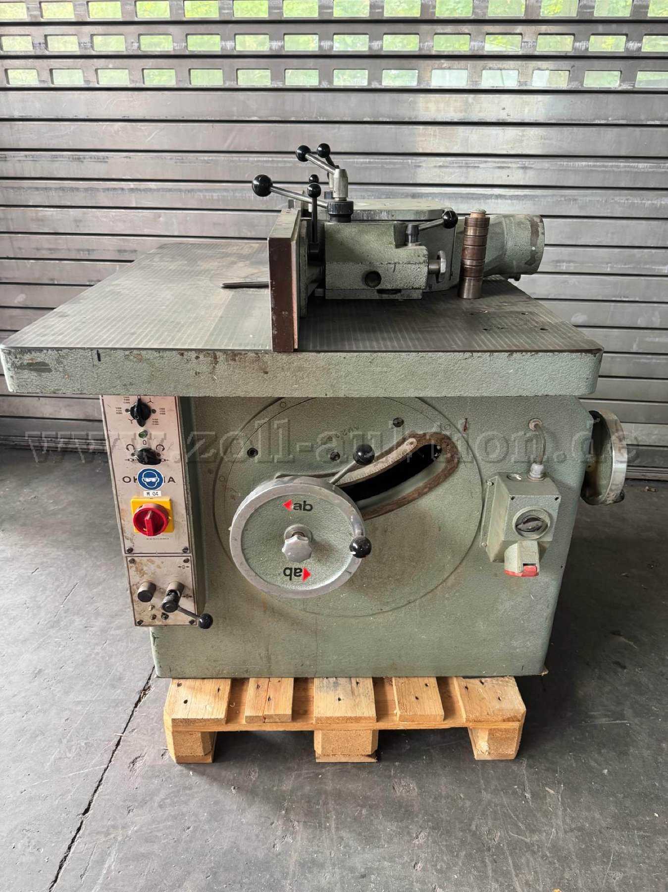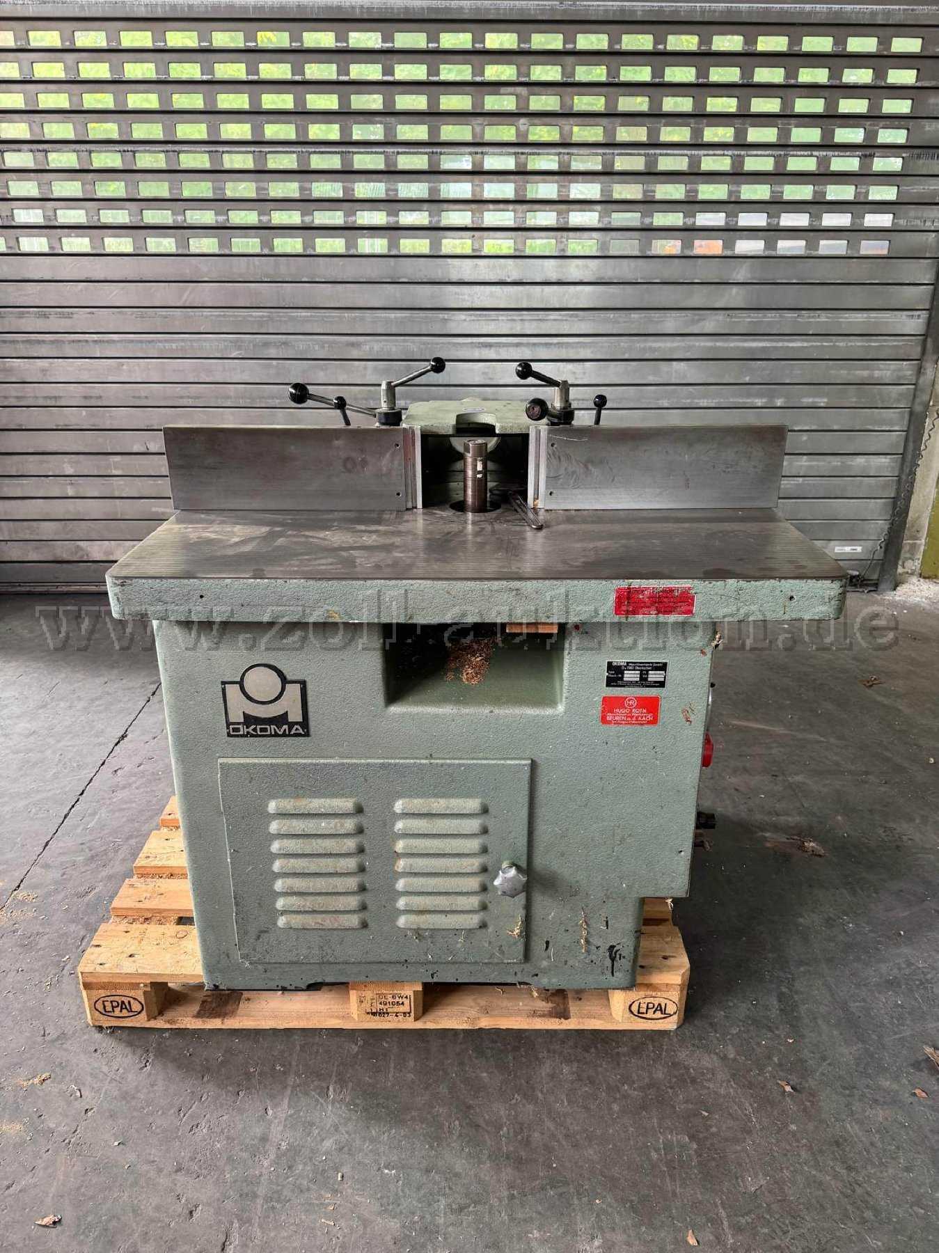 Angeboten wird eine Tischfräsmaschine mit schwenkbarer Fräswelle der Fa. Okoma.