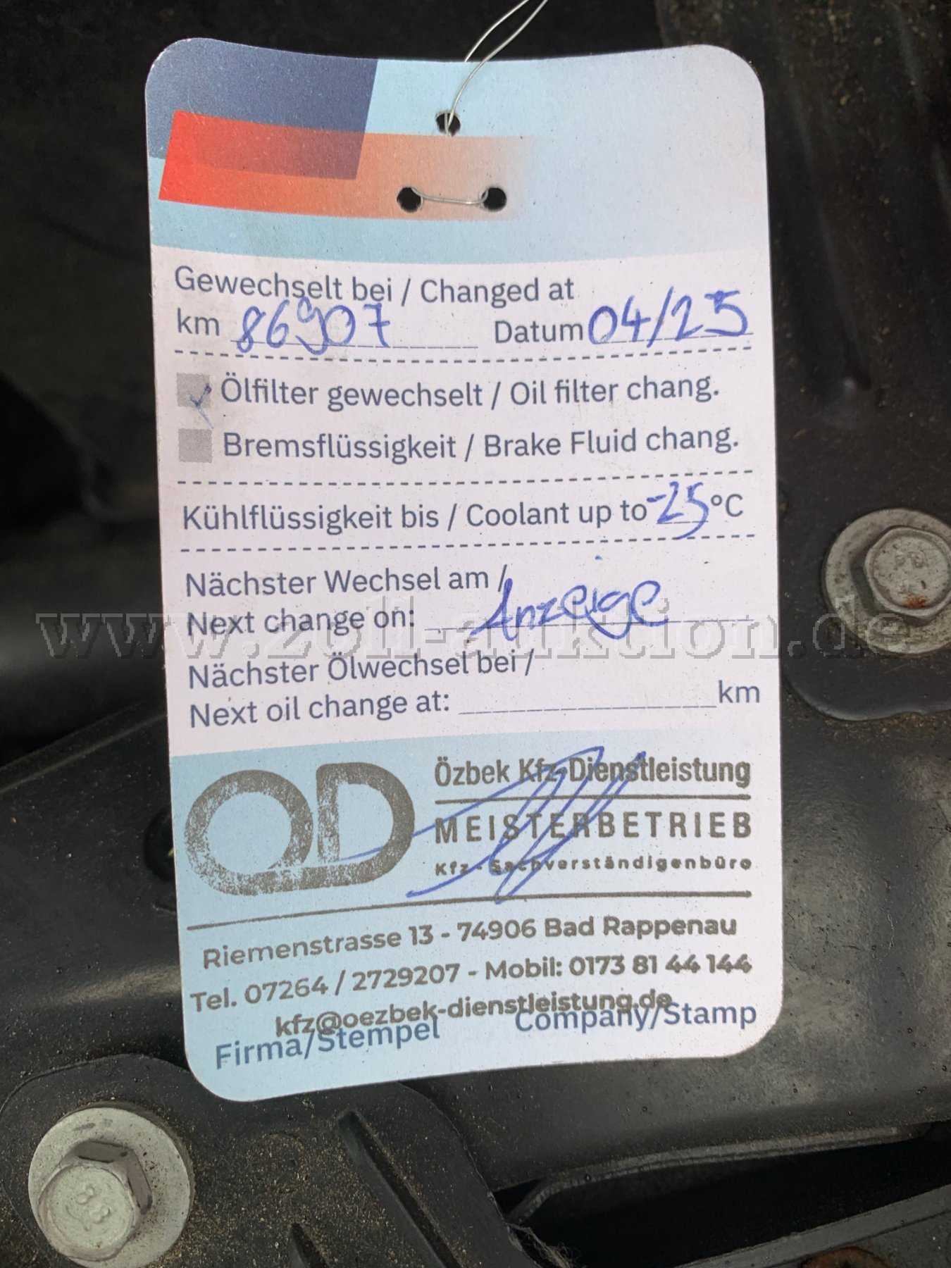 Letzter Ölwechsel: bei 86907km /04_2025
