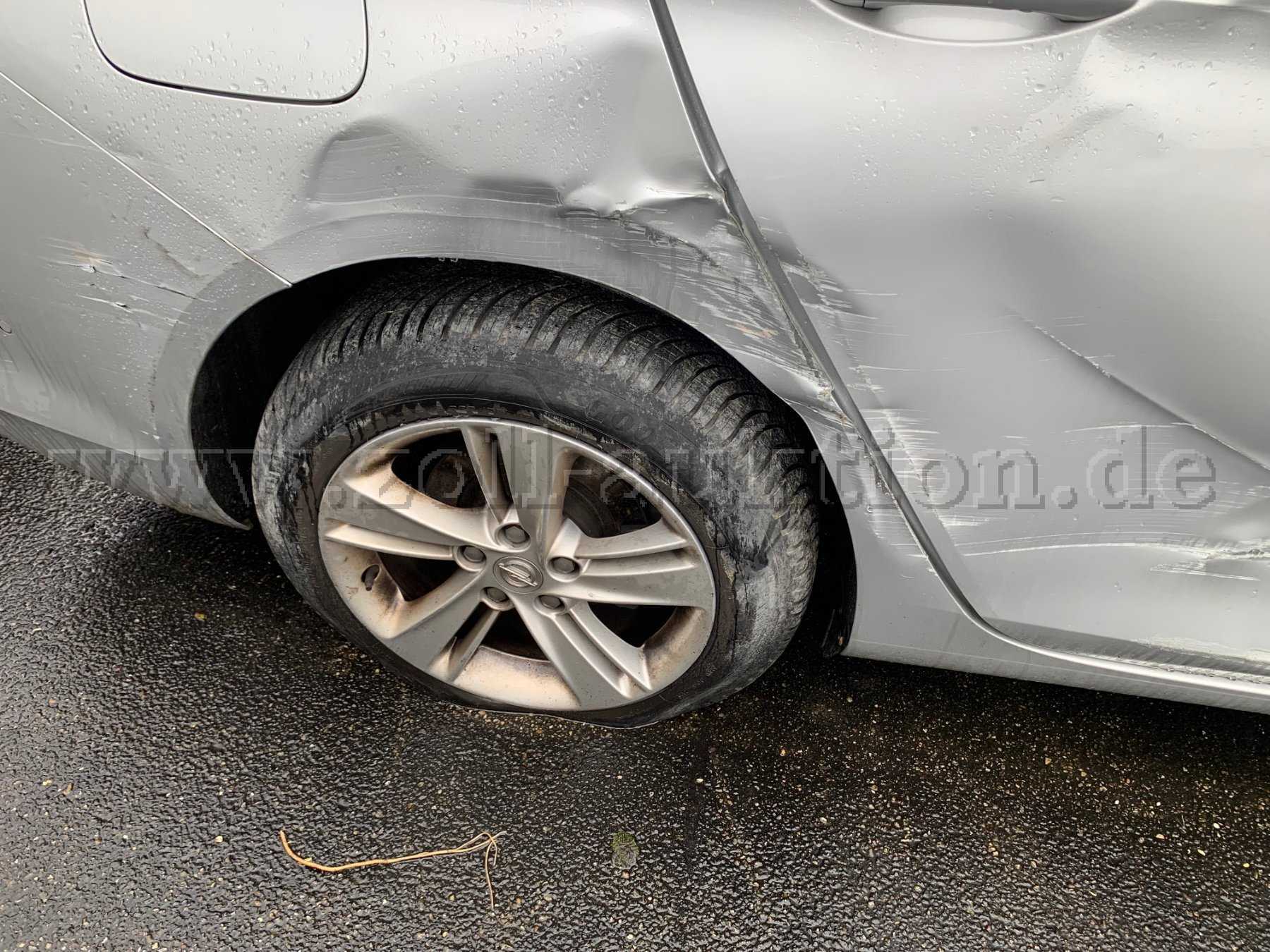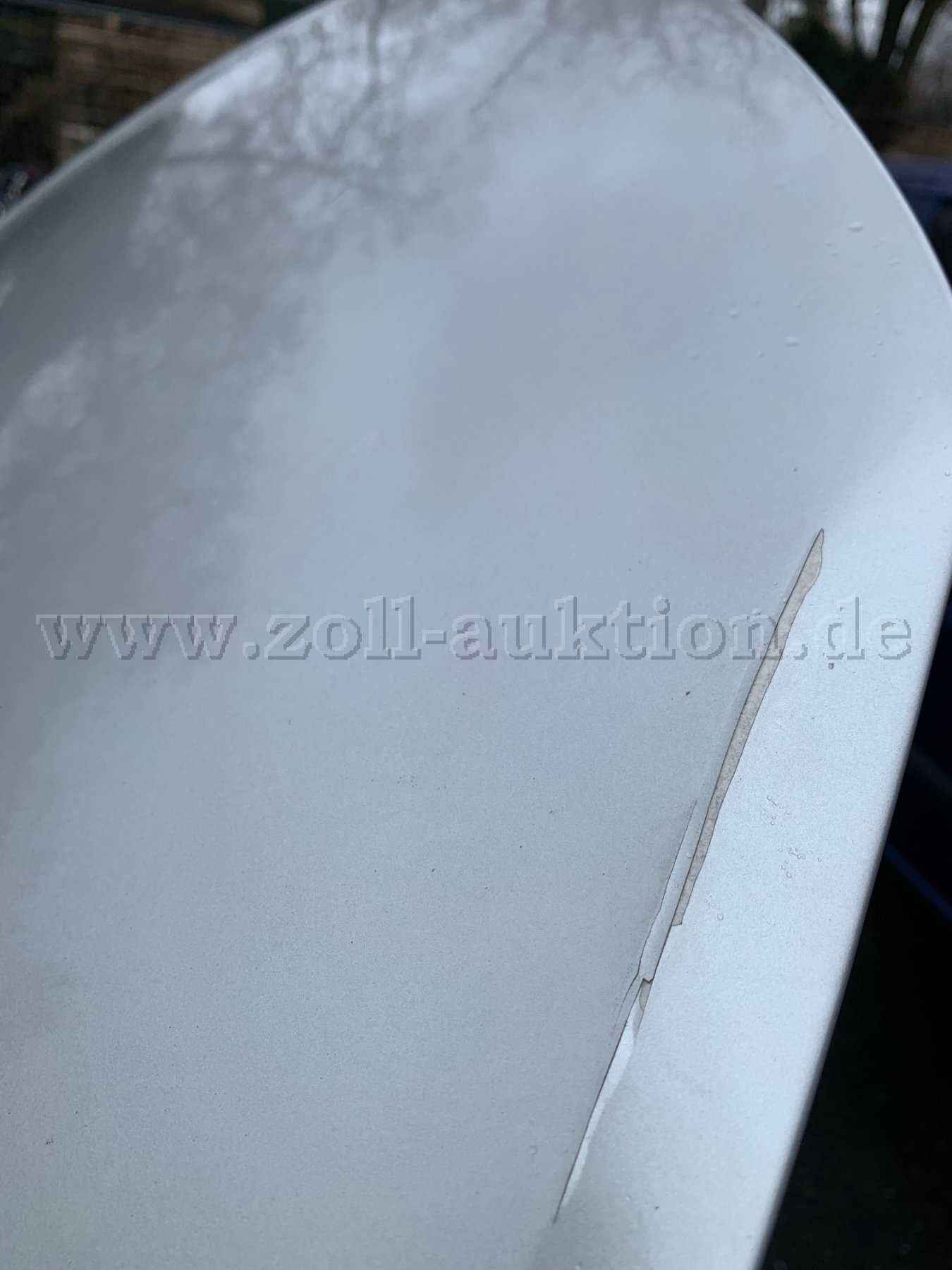 Das Fahrzeug ist unfallbeschädigt. Komplette rechte Seite ab der Beifahrertür, sowie an der Frontmaske vorne rechts und hinten rechts haben einen Streifschaden. Das Rücklich hinten Rechts ist beschädigt. Es sind 4 Sommerreifen auf Alufelgen montiert. Der Reifen hinten rechts verliert Luft. Die Heckseite weist keine Schäden auf. Am rechten hinteren Kotflügel befindet sich eine Delle/Kratzer. Soweit ersichtlich ist der Motorraum trocken. Auf der Motorhaube vorne rechts befindet sich ein größerer Kratzer. Der Innenraum ist verschmutzt.