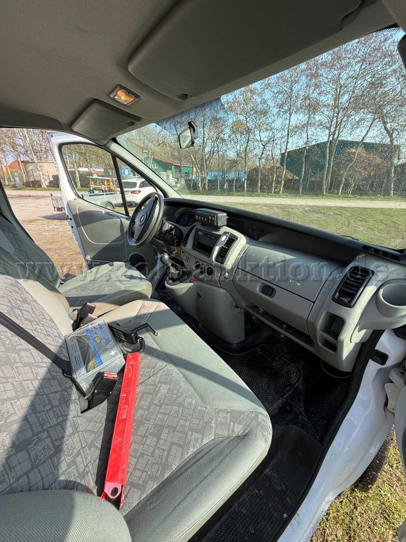 Durch den Rückbau von Anbauten sowie der Funkkomponenten im Innenraum sind Spuren des Rückbaus vorhanden. Vorbau für ein Funkgerät der Marke Sepura ist vorhanden.