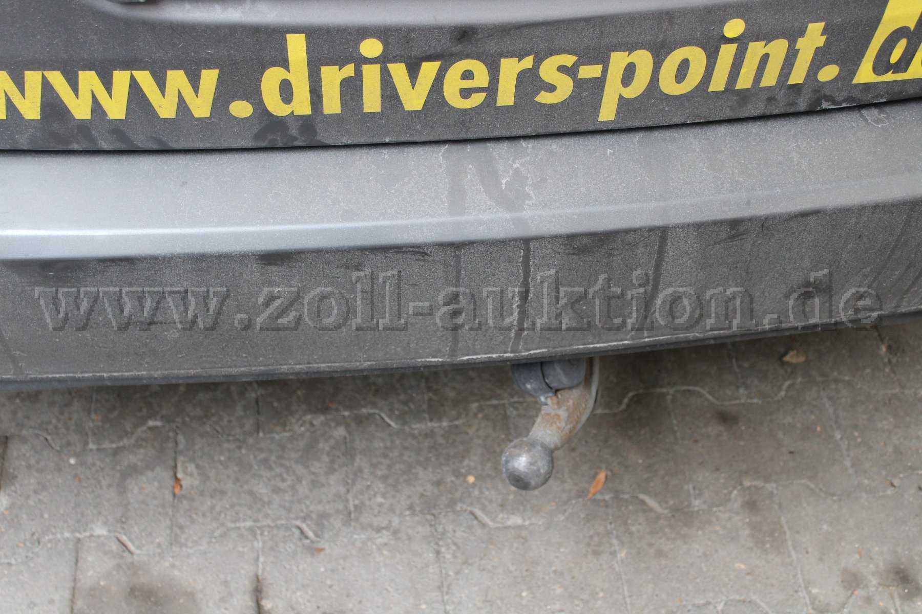 Auf der Motorhaube ist ein kleiner Lackkratzer. Rundum sind einige kleinere Kratzer oder kleinere Roststellen. An der Stoßstange hinten links ist eine etwas größere Beule. Die Anhängerkupplung ist verdreht. Die Seitenscheibe der Fahrertür wurde eingeschlagen. Das Fahrzeug ist sowohl innen als auch außen stark verschmutzt.