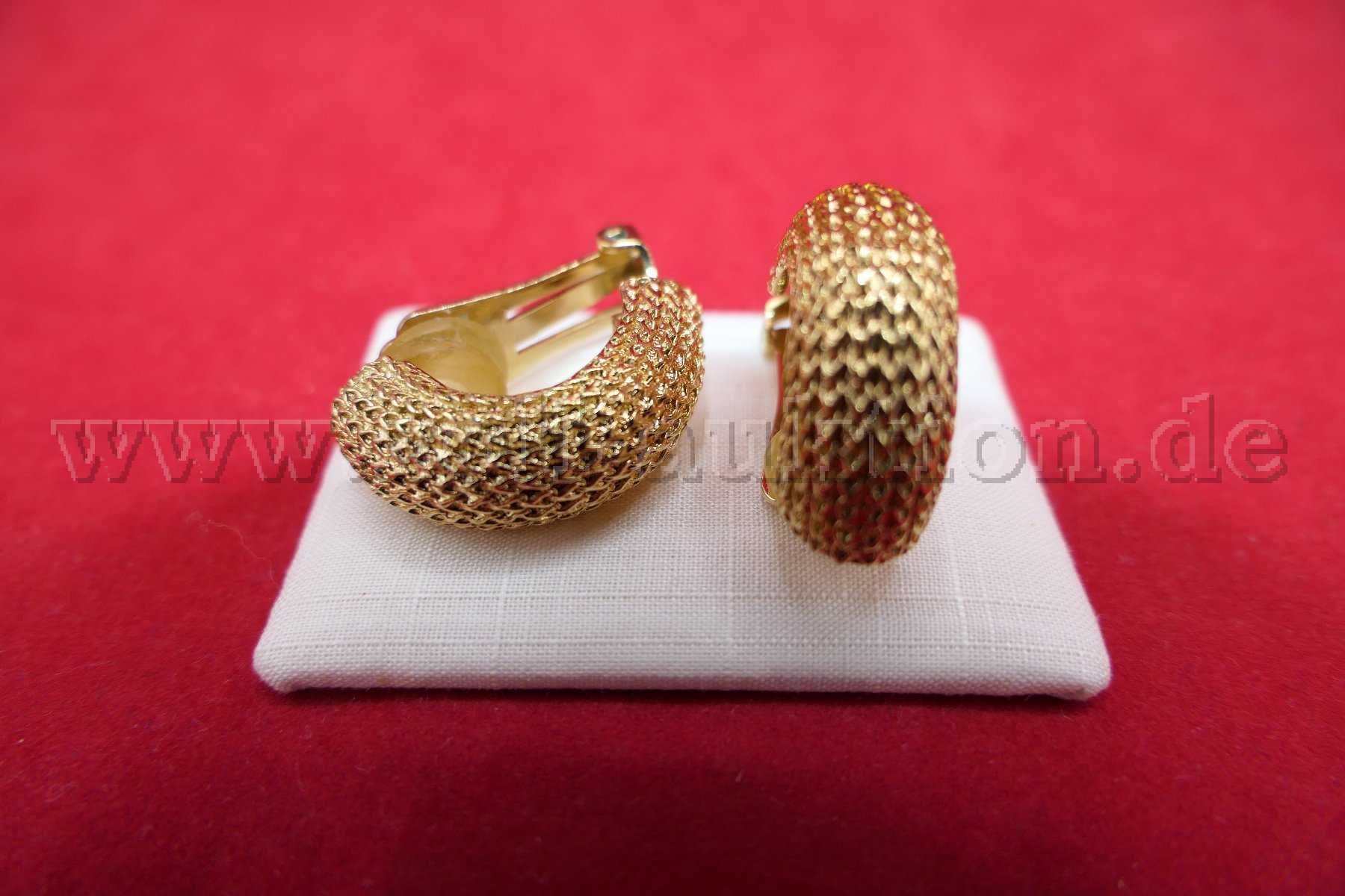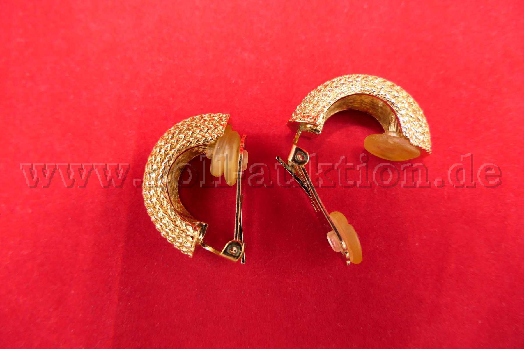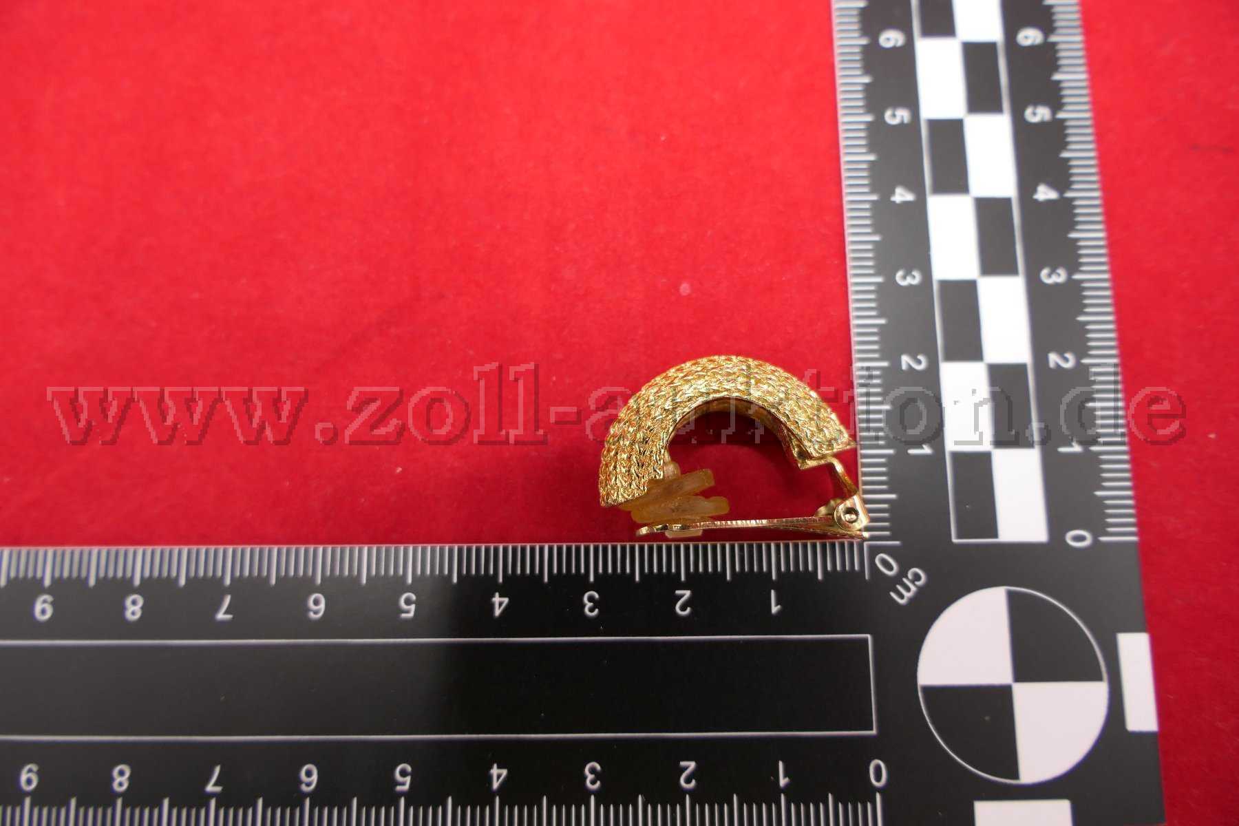 Versteigert wird ein Paar Ohrclips Creolen mit einem Maß von 10x28 mm.