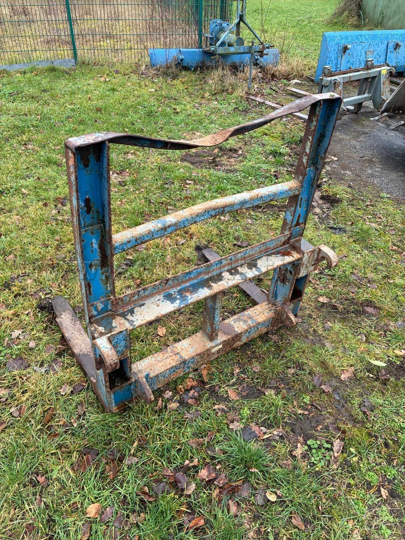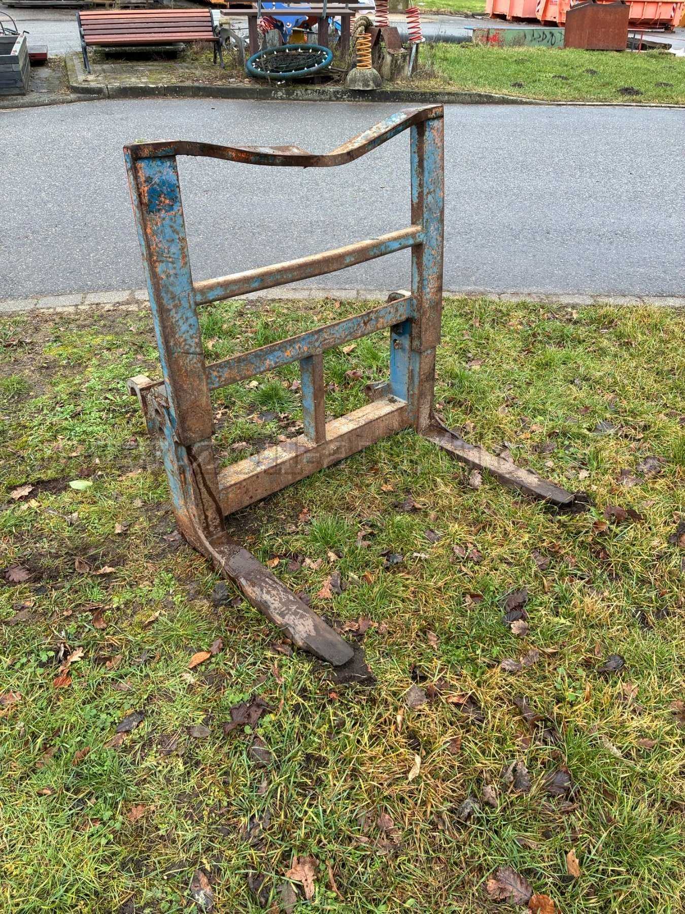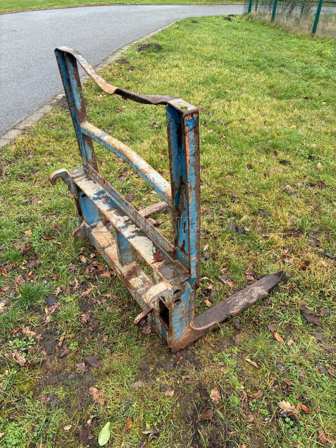 Die Gabel passt an Traktoren oder Radlader mit Euroannahme. Die Rahmenteile sind verbogen (siehe Foto) und die Gabel weist starke alters- und nutzungsbedingten Verschleiß- und Gebrauchsspuren auf (Lackschäden, Kratzer, Dellen, Rost, Verschmutzung). Des Weiteren ist die Gabel nicht verstellbar.