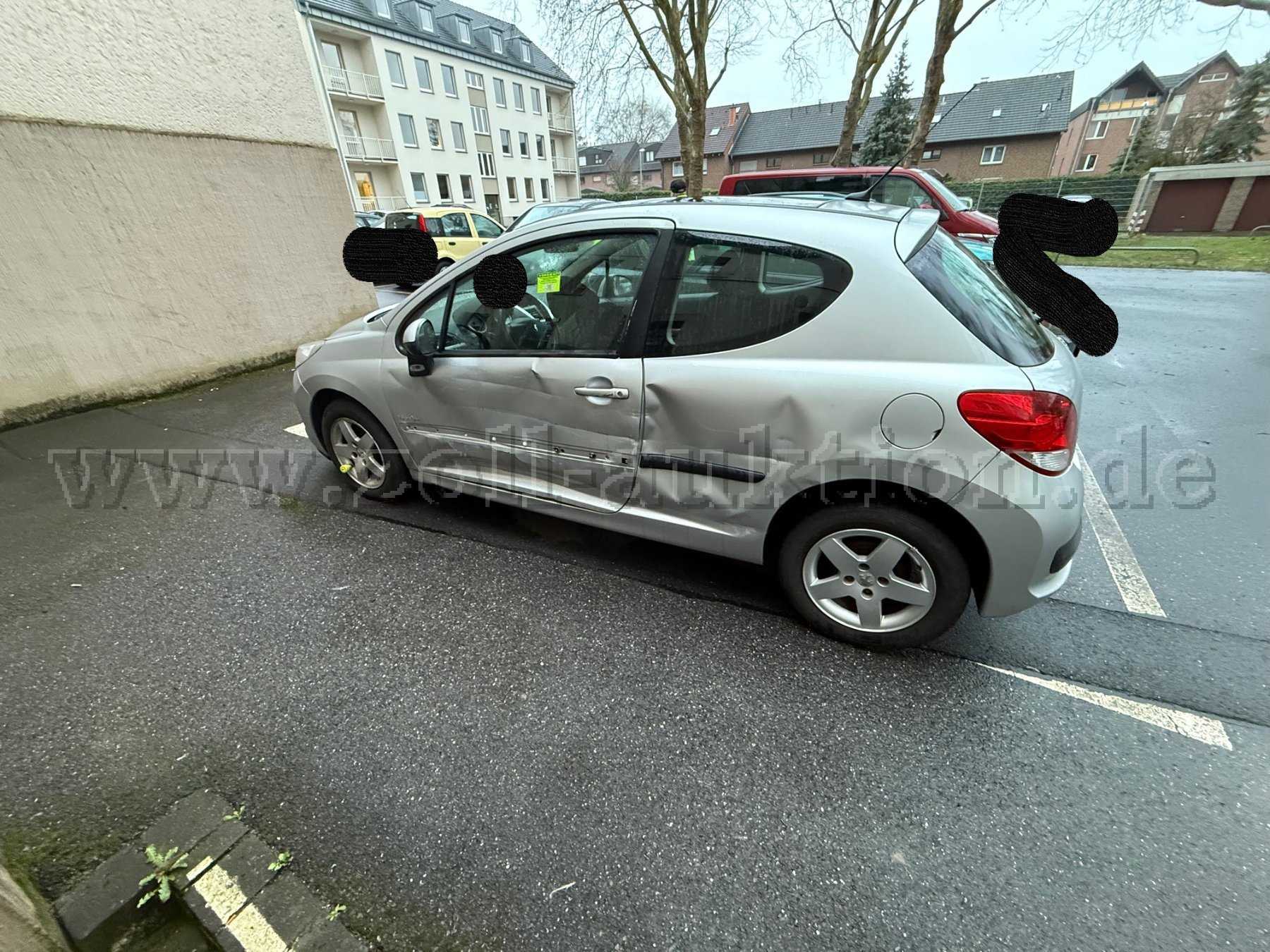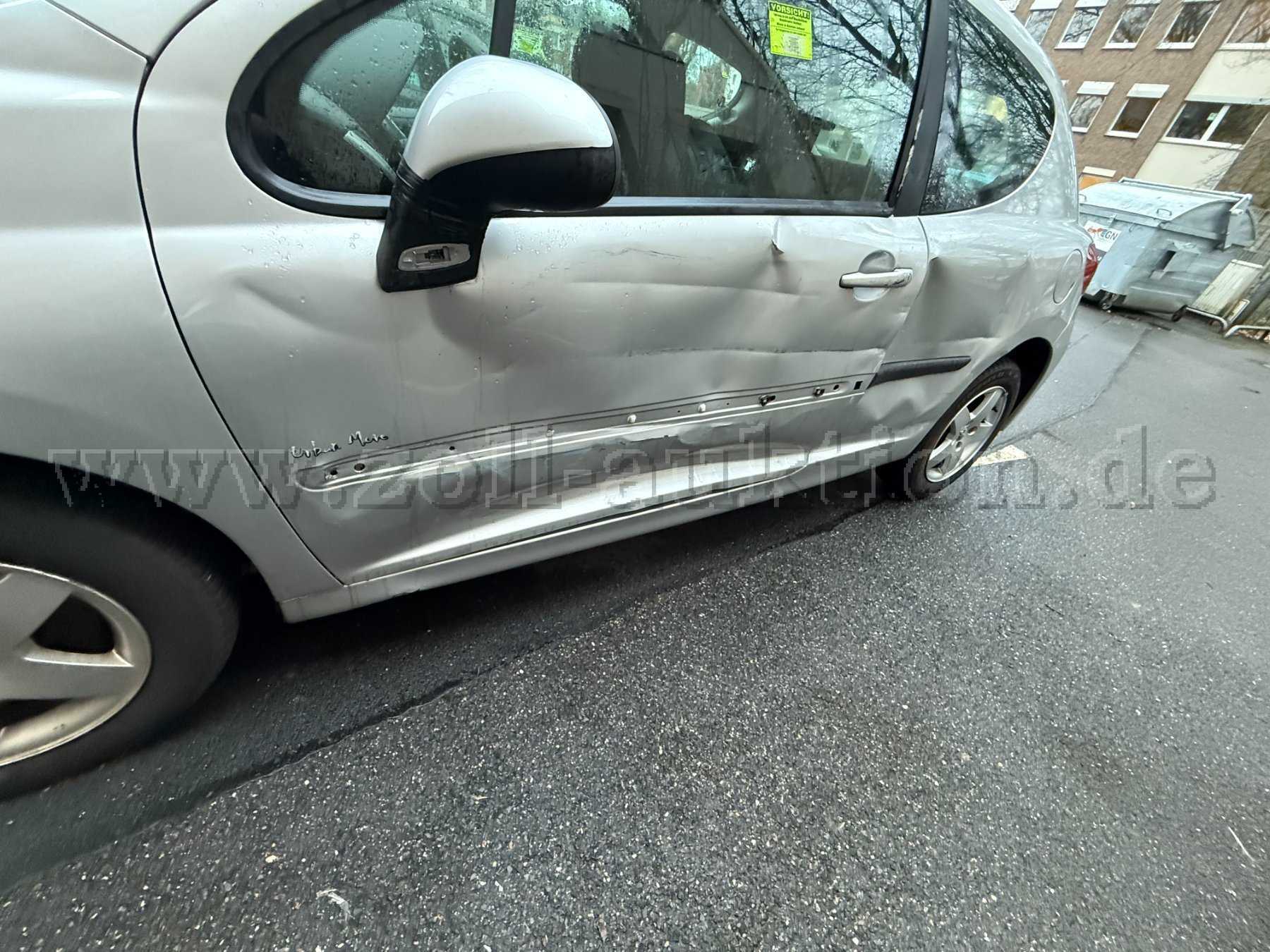 Verschiedene Eindellungen, Deformierungen, Verschürfungen sowie Kratzer und Roststellen am Fahrzeuglack sind augenscheinlich. Raucherfahrzeug. Innenraum verschmutzt mit sichtbarem Schimmelbefall. Die gesamte Fahrerseite ist sehr stark beschädigt (siehe beigefügte drei Detailfotos des Schadens)