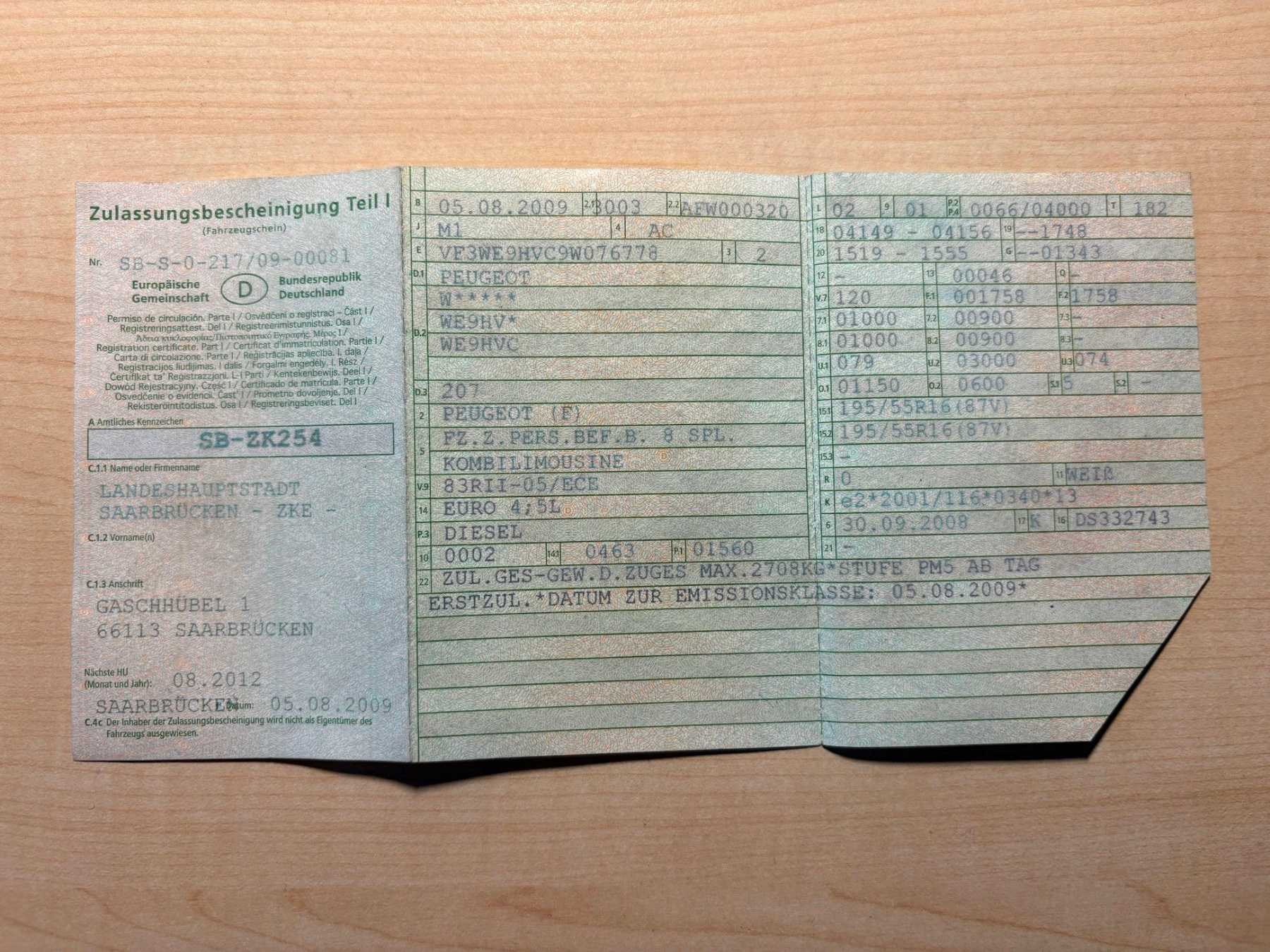 Erstzulassung (Datum): 05.08.2009