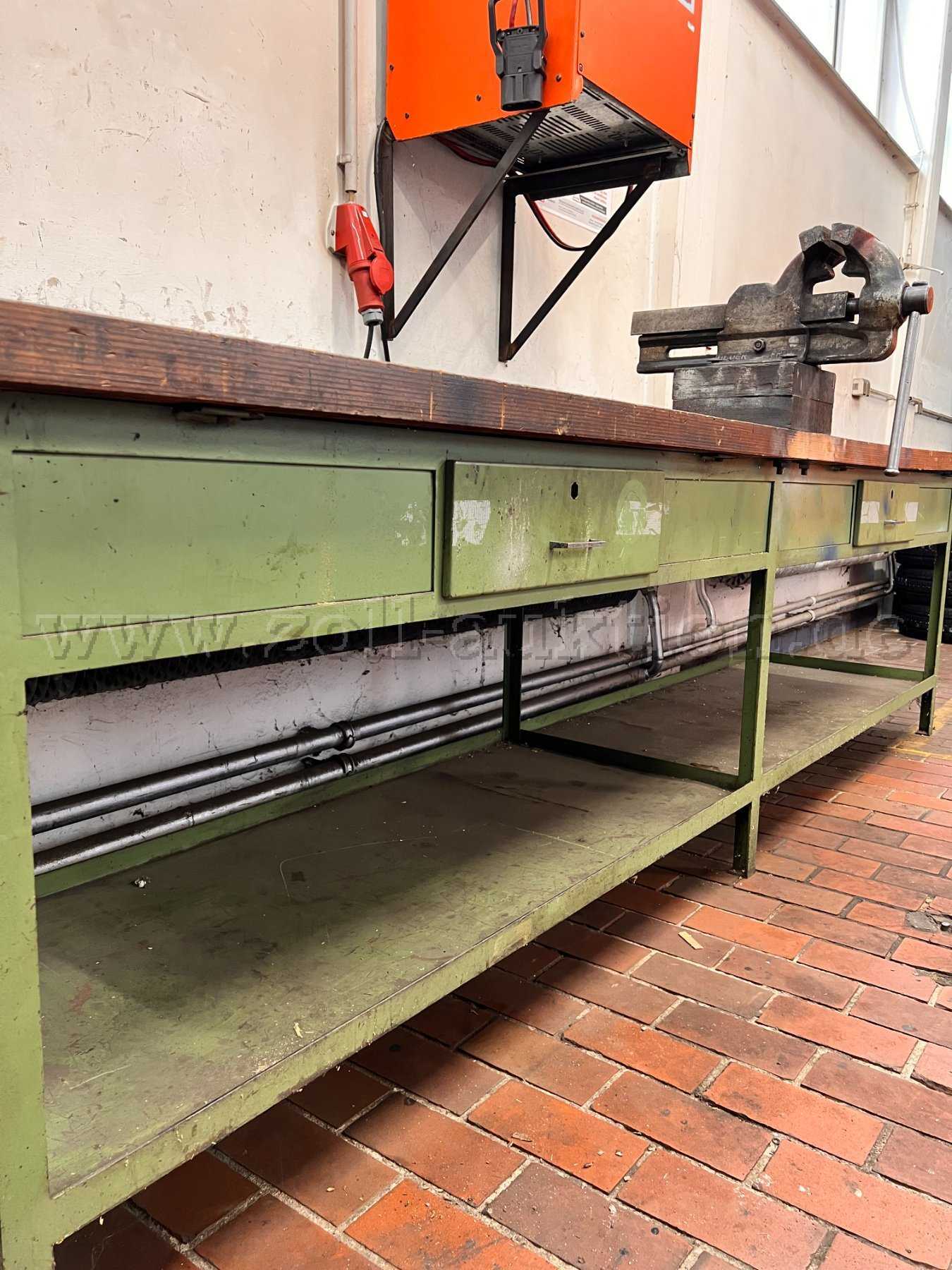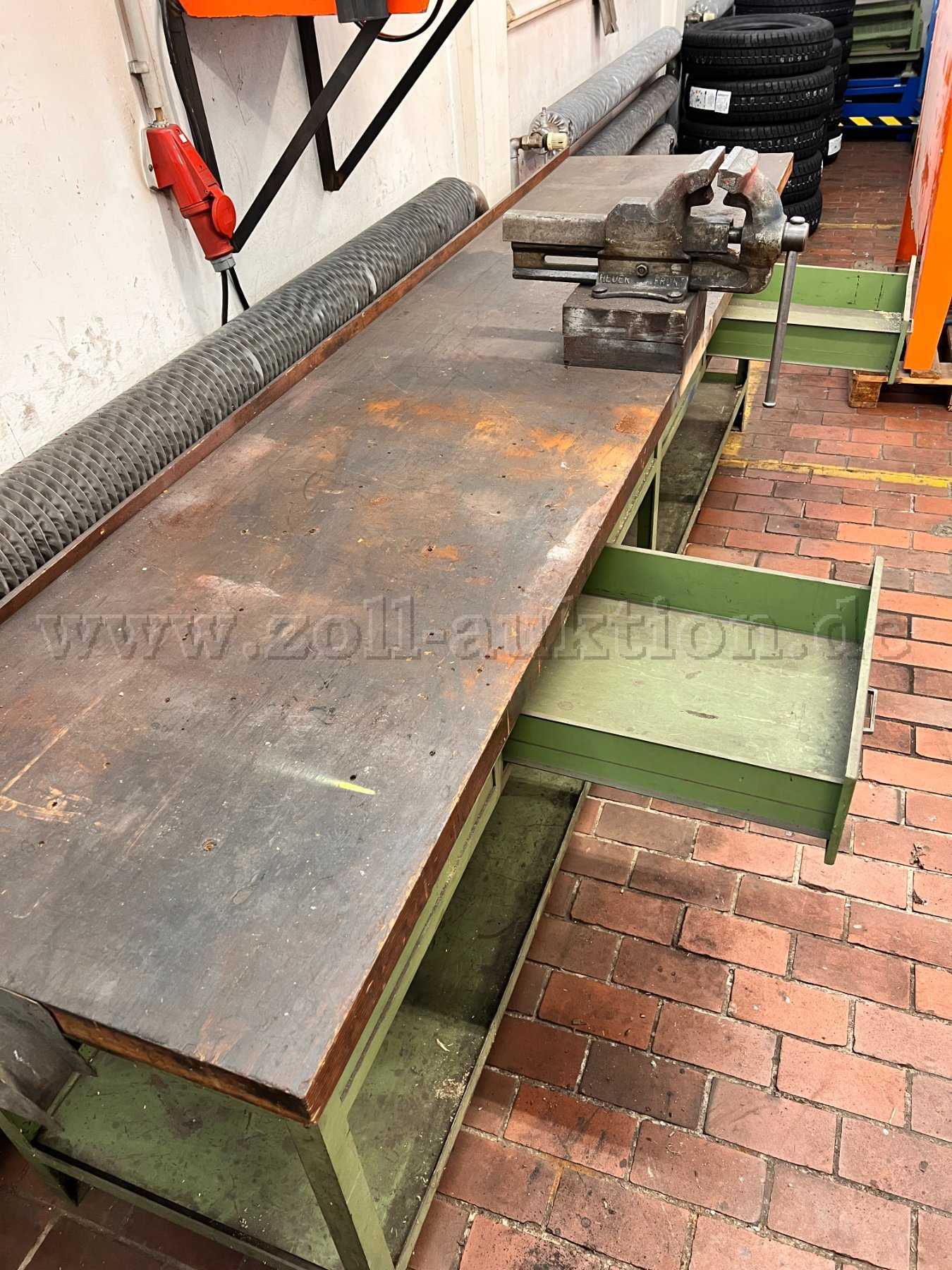 Angeboten wird eine gebrauchte Profi - Werkbank inklusive Schraubstock mit 2 Schubladen ohne Schlösser