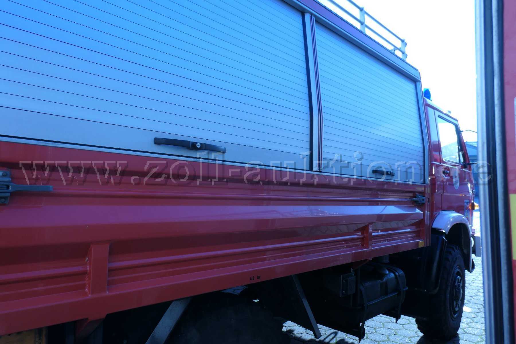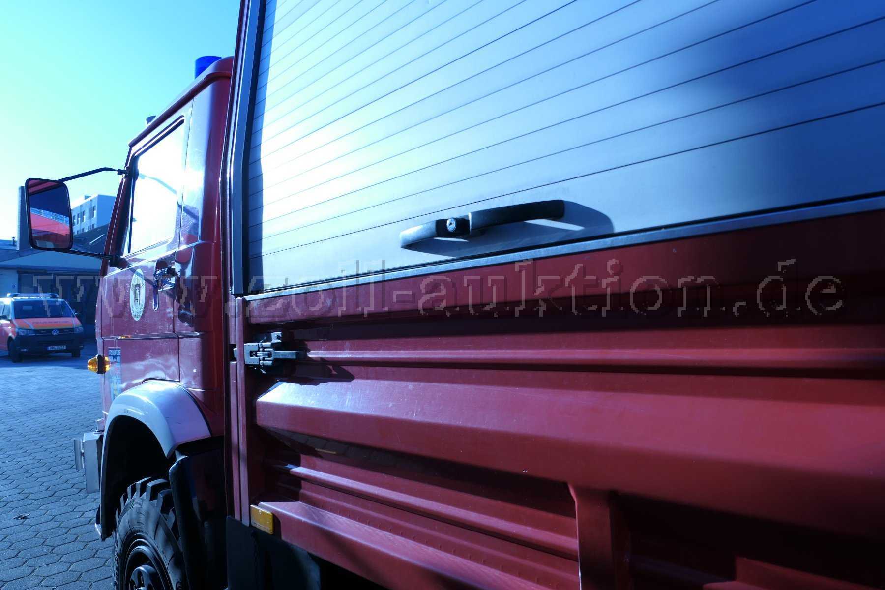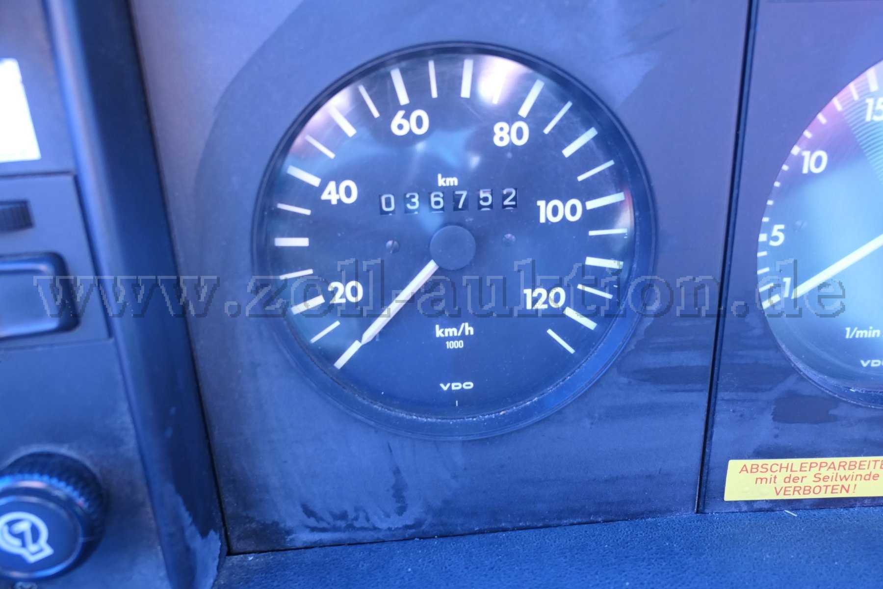Die Funkanlage wurde ausgebaut. Das Fahrzeug wird ohne jegliche Beladung versteigert. Alters- und Nutzungsbedingt weist das Fahrzeug Kratzer, kleine Dellen und kleine Roststellen auf. An den Einstiegstellen ist der Lack teilweise abgeplatzt oder verschrammt.