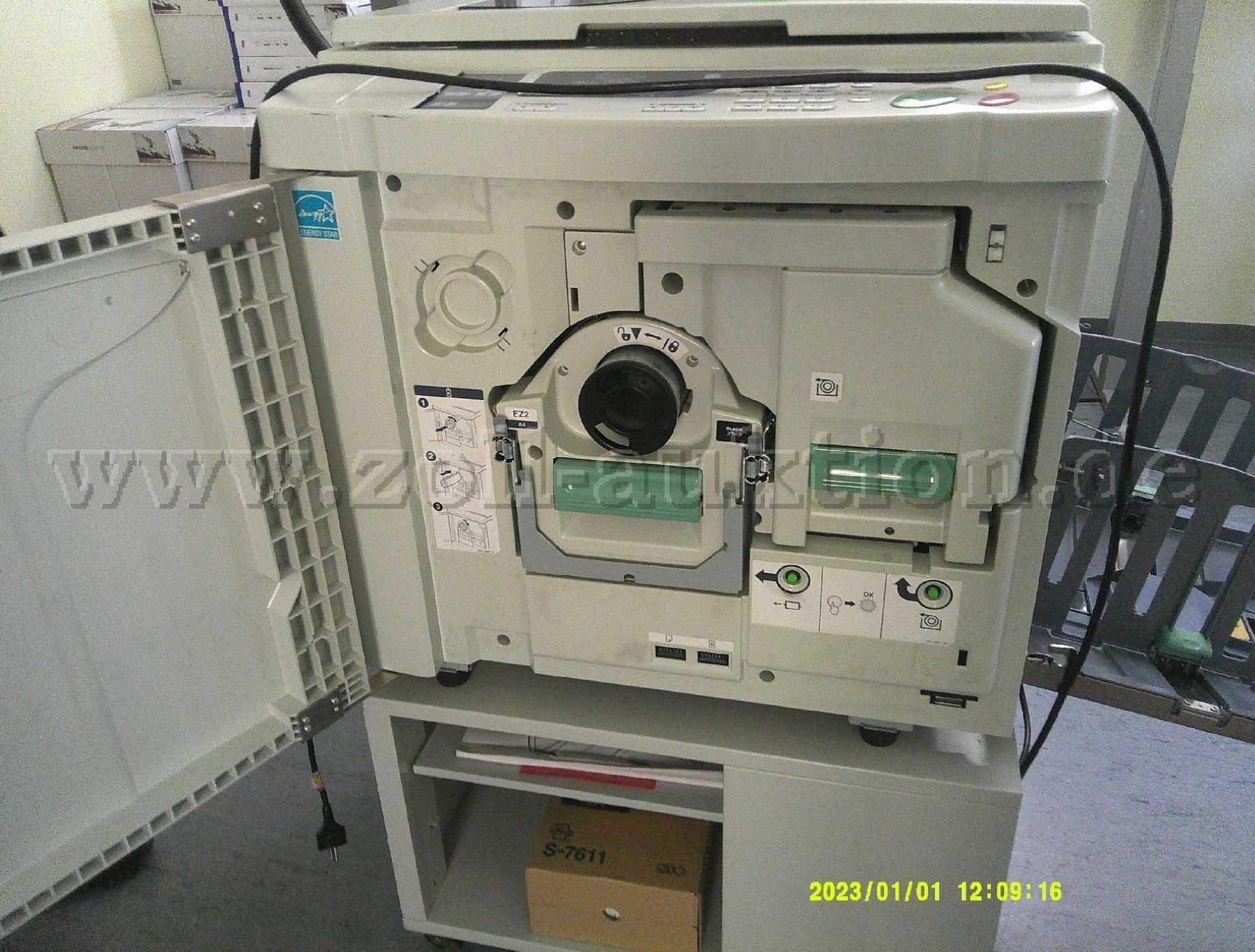 RISO – Drucker RZ 200 mit einem Unterschrank auf Rollen.