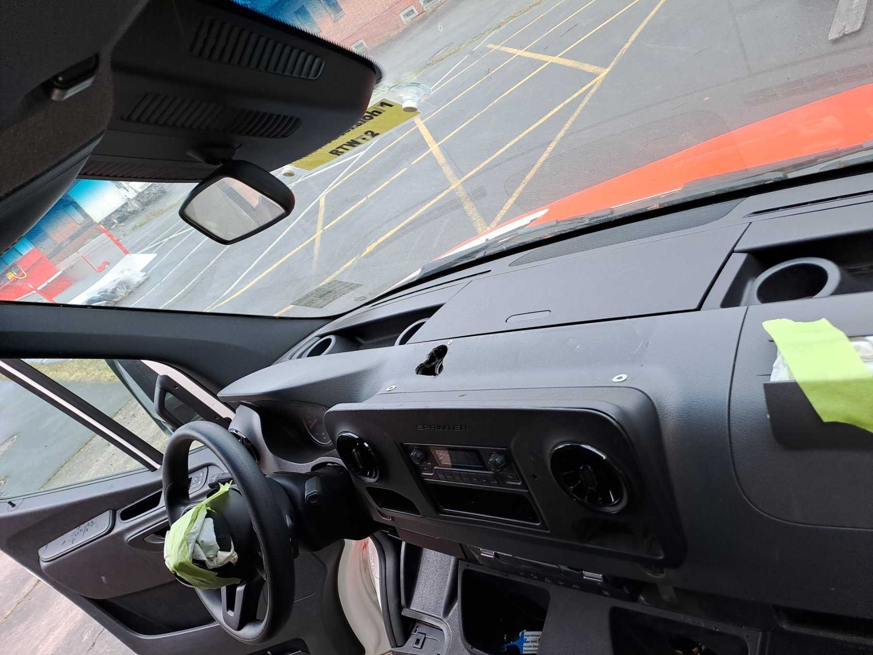 Außerdem sind Ausbauspuren / Löcher vom Rückbau der Signal- und Funkanlage im Armaturenbrett zu erkennen.