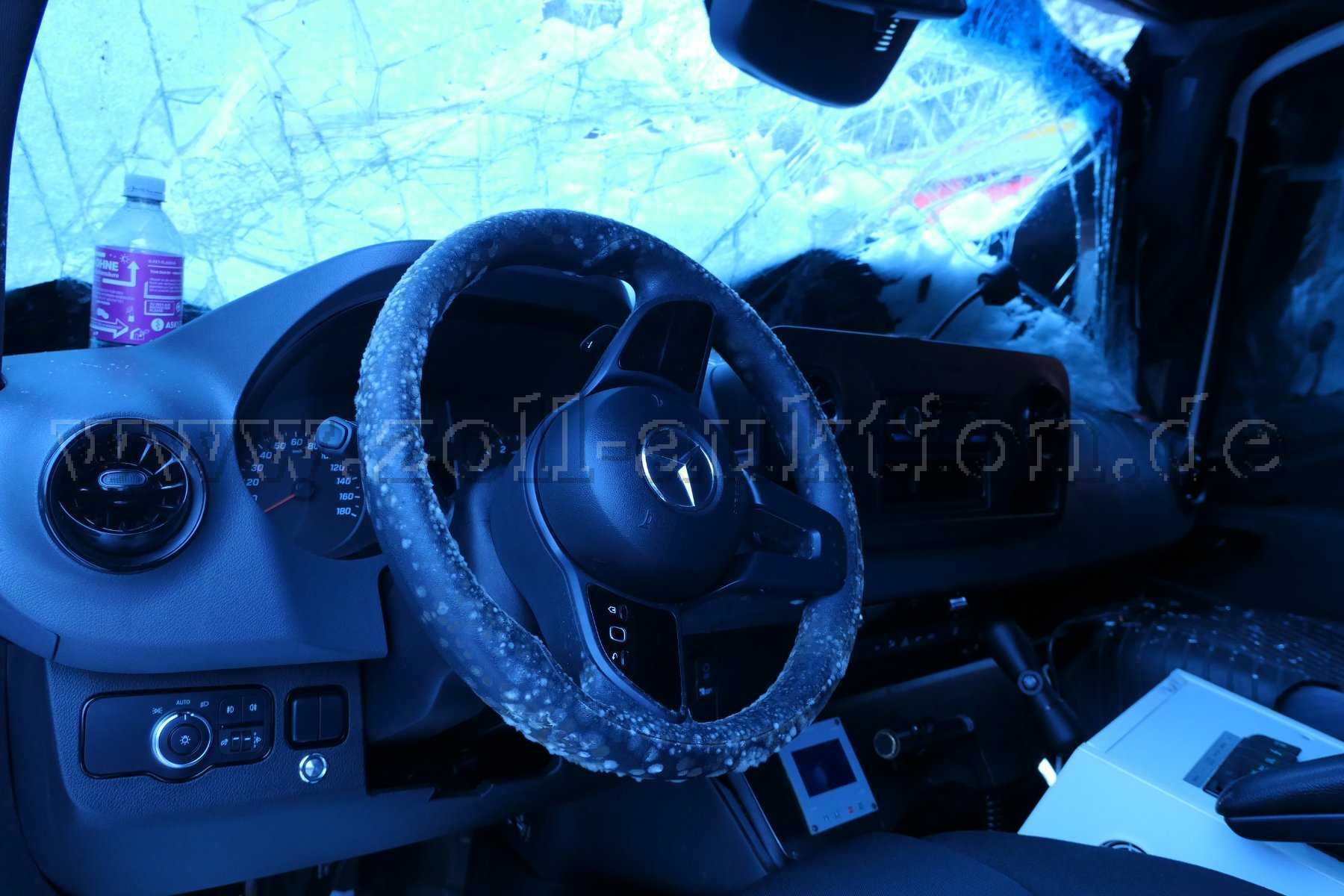Durch die Schneelast wurde die Abdeckplane herunter gedrückt, so gelangte Feuchtigkeit in das Führerhaus. Schimmelbefall im Fahrerhaus.