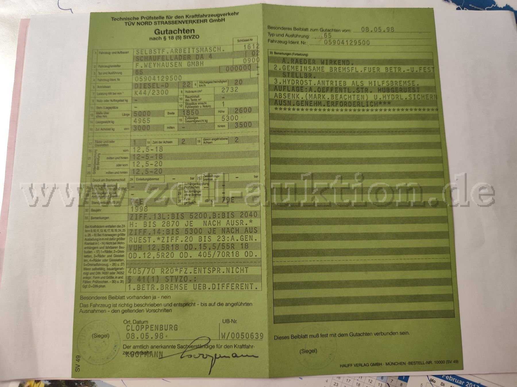 Es wird empfohlen, vor Abgabe eines Gebotes eine Besichtigung der Arbeitsmaschine vorzunehmen. Besichtigungen und die Abholung nach Auktionsende sind nur nach vorherigen Terminvereinbarungen und während den Geschäftszeiten möglich.