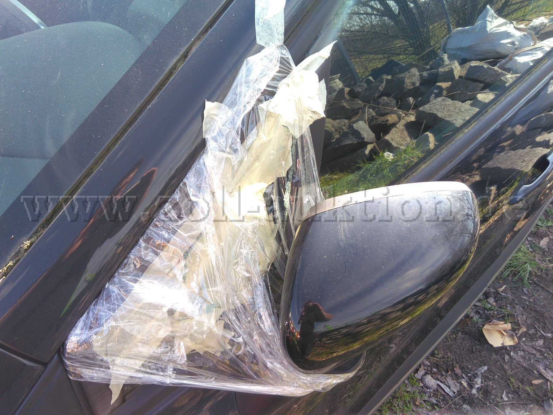 Das gesamte Fahrzeug ist verschmutzt, Wischerarm hinten fehlt- abgebrochen, Heckklappe Kratzer, Stoßfänger hinten beschädigt, Seitenteil hinten links Kratzer und Delle, Stoßfänger vorn links zerkratzt, Tür vorn rechts Kratzer, Bremse vorn Rostansatz, der Innenraum weist Gebrauchsspuren auf. Hinweis: Zur Fzg-Öffnung wurde vorn links das kleine Dreiecksfenster zerstört. siehe Foto