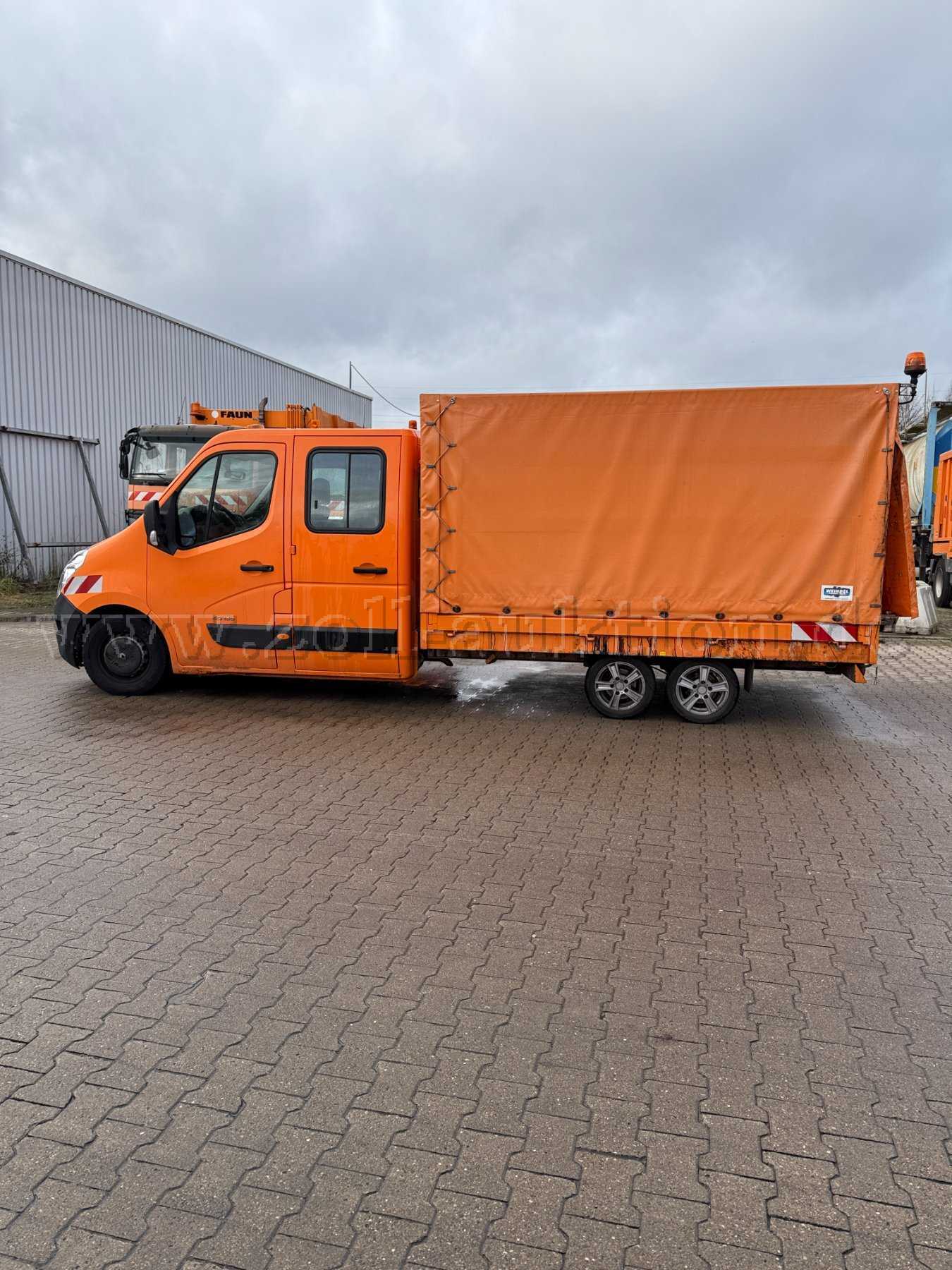 TRENNWAND KOMPLETT VERGLAST, Tachograph digital, Wagenheber, Aufbau Pritsche und Spriegel TBZ, Tandemachse, Schmutzfänger hinten TBZ Plane Weindel, Rundumkennleuchte vorn Solaris LP 400 und hinten LED , Sitzheizung Carbotex mit Schalter im Sitzkasten, Standheizung, Webasto Typ 9021037C Feuerlöscher Gloria 2kg Pulver ABC, Warnmarkierung rot / weiss, Seitenmarkierungsleuchten, Anhängerkupplung abnehmbar, 195/50R13c 104/101N, Leichtmetallfelgen HInterachsen