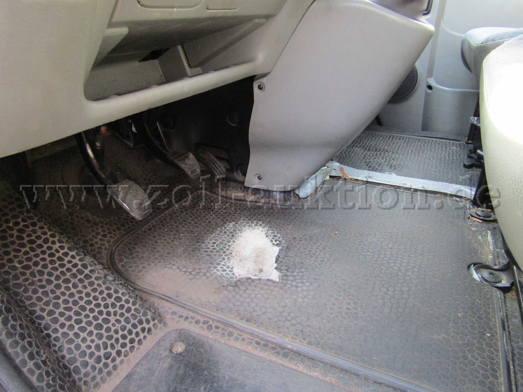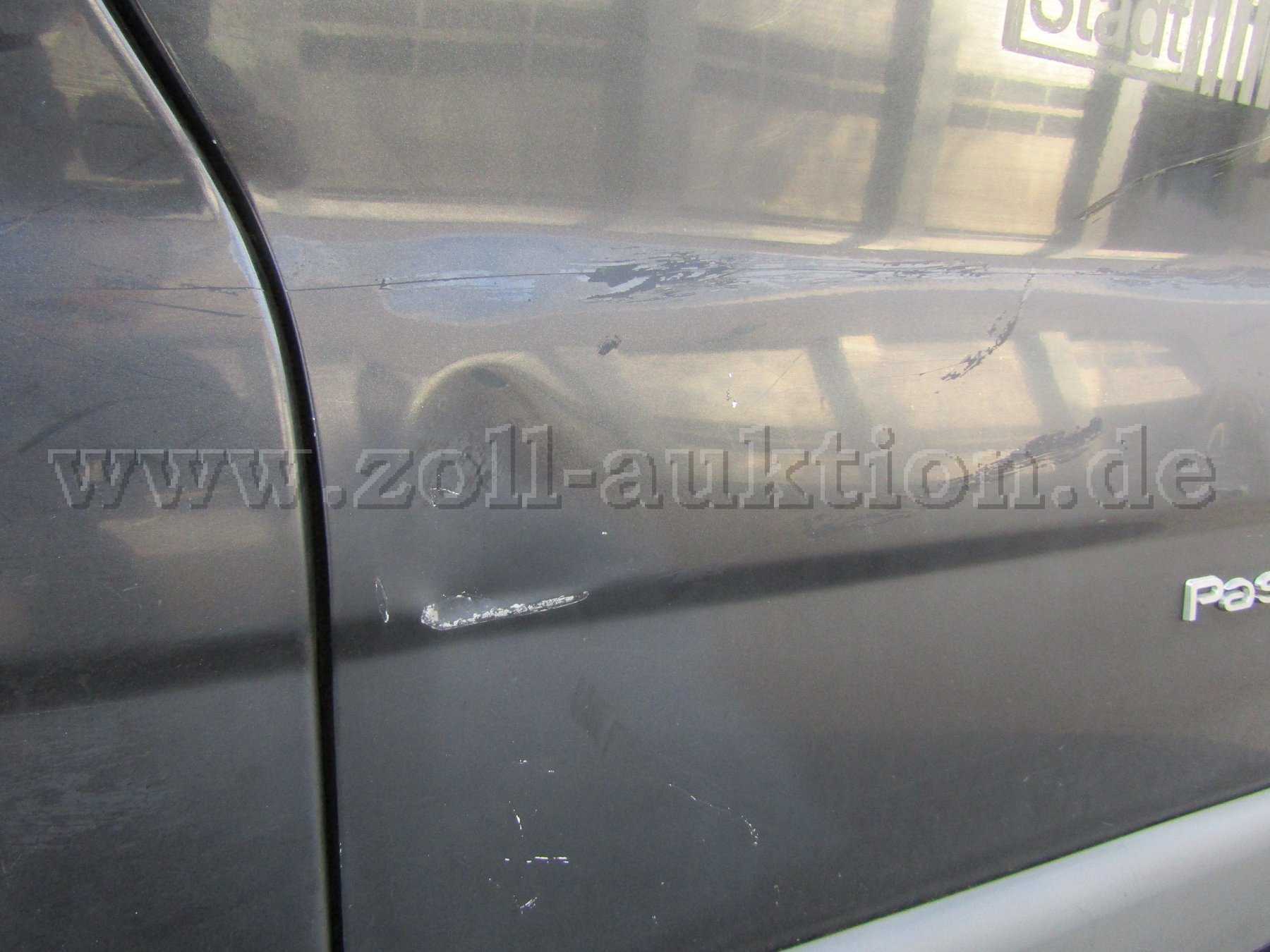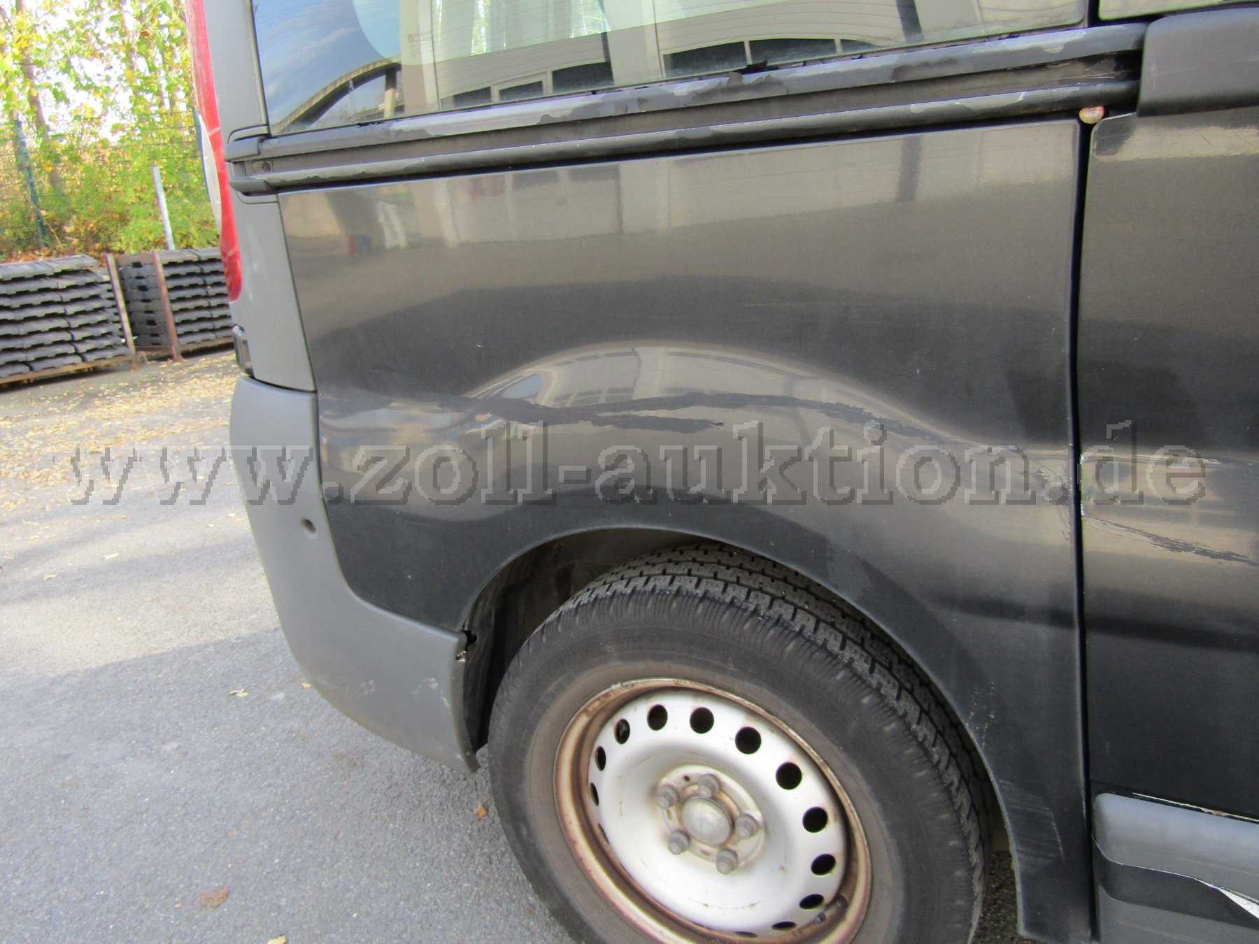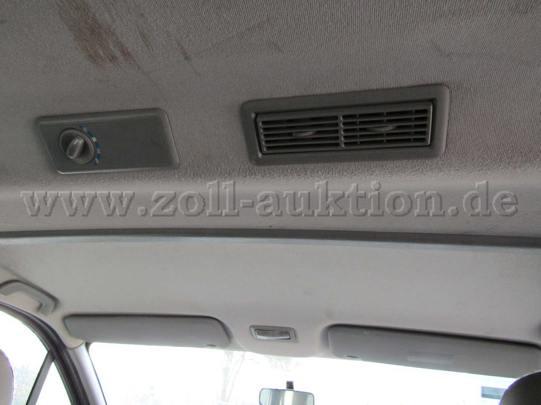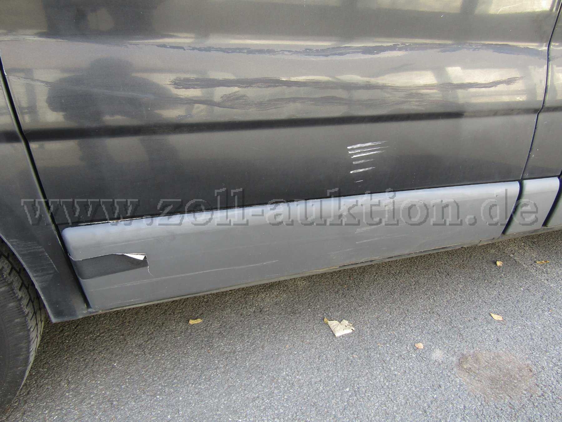 Das Fahrzeug ist in einem schlechten Allgemeinzustand. Stoßfänger vorn und hinten verkratzt, Beifahrertür und Scheibetür Beifahrer Seite verbeult und verkratzt. Seitenteil hinten rechts verkratzt. Innenraum verschmutzt, Lack verkratzt, Verkleidungen verkratzt. Alle Sitze, Polster und Bezüge beschädigt, Formhimmel hat ein Loch und der Bodenbelag Sitzreihe eins ist beschädigt. Der Lack ist „stumpf“. Das Fahrzeug ist nicht fahrbereit (siehe HU Mängel).