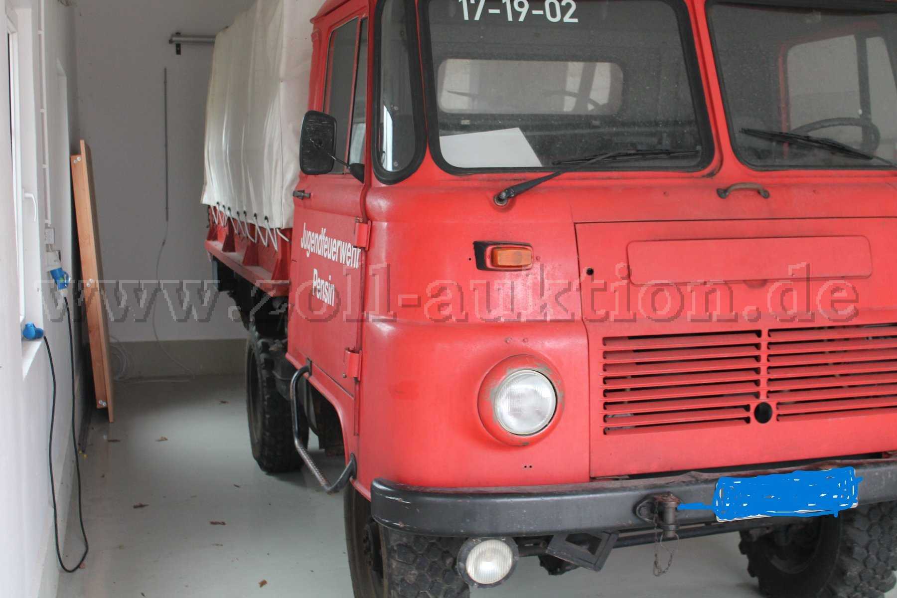 Die Gemeinde Kletzin (Mecklenburg-Vorpommern) versteigert ein Mannschaftstransportwagen Robur LO aufgrund einer Ersatzbeschaffung. Das Fahrzeug befindet sich nicht mehr im Einsatzdienst, ist aber funktionstüchtig und fahrbereit. Das Fahrzeug wird ohne Funk und ohne feuerwehrtechnische Beladung versteigert.