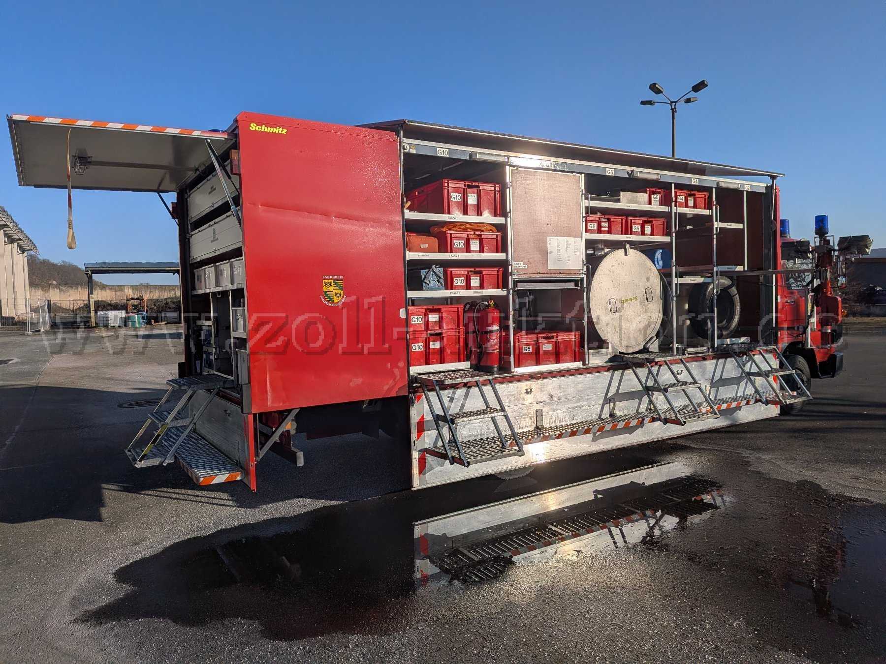Das Fahrzeug (bestehend aus Fahrgestell und feuerwehrtechnischem Aufbau (hergestellt durch F&U Feuerwehr- u. Umwelttechnik GmbH)) wird teilbeladen angeboten, die bestehenden Beladungsteile beziehen auf die unvollständige Normausstattung des Fahrzeugs gemäß DIN 14555-12 zum Zeitpunkt der Erstzulassung. Zum aktuellen Zeitpunkt sind Teile der Beladung noch einsatztauglich geprüft (z.B. aktueller Nachweis über die Prüfung ortsveränderlicher, elektrischer Geräte). Gleichfalls ist das Fahrzeug gegenwärtig noch fahrbereit.