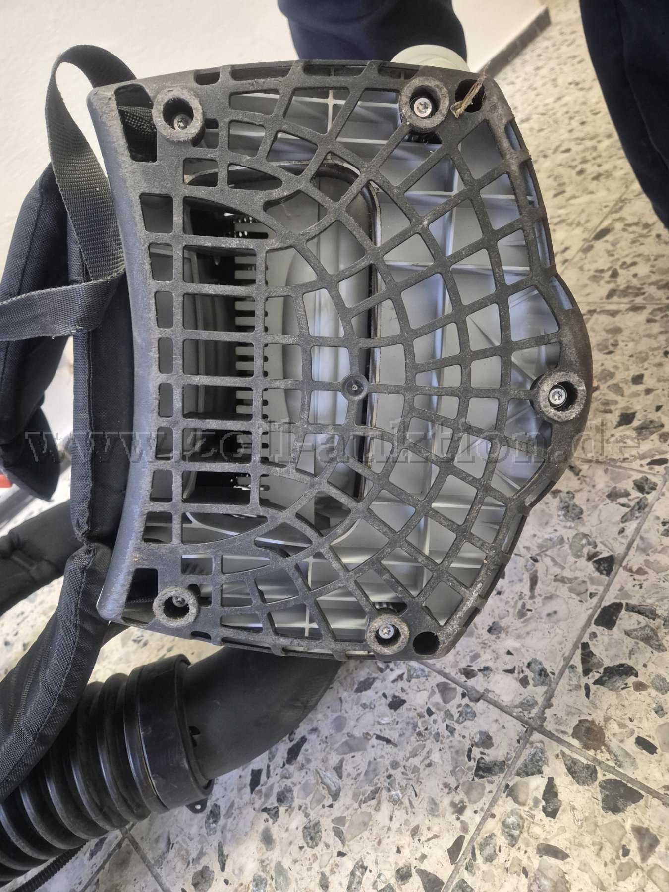 Das Mündungsteil des Laubbläsers weist Abnutzungsspuren aufgrund des Arbeitens auf Bodenebene auf (Bild 7). Der Auspuff ist aufgrund von Benutzung leicht verrußt (Bild 6).