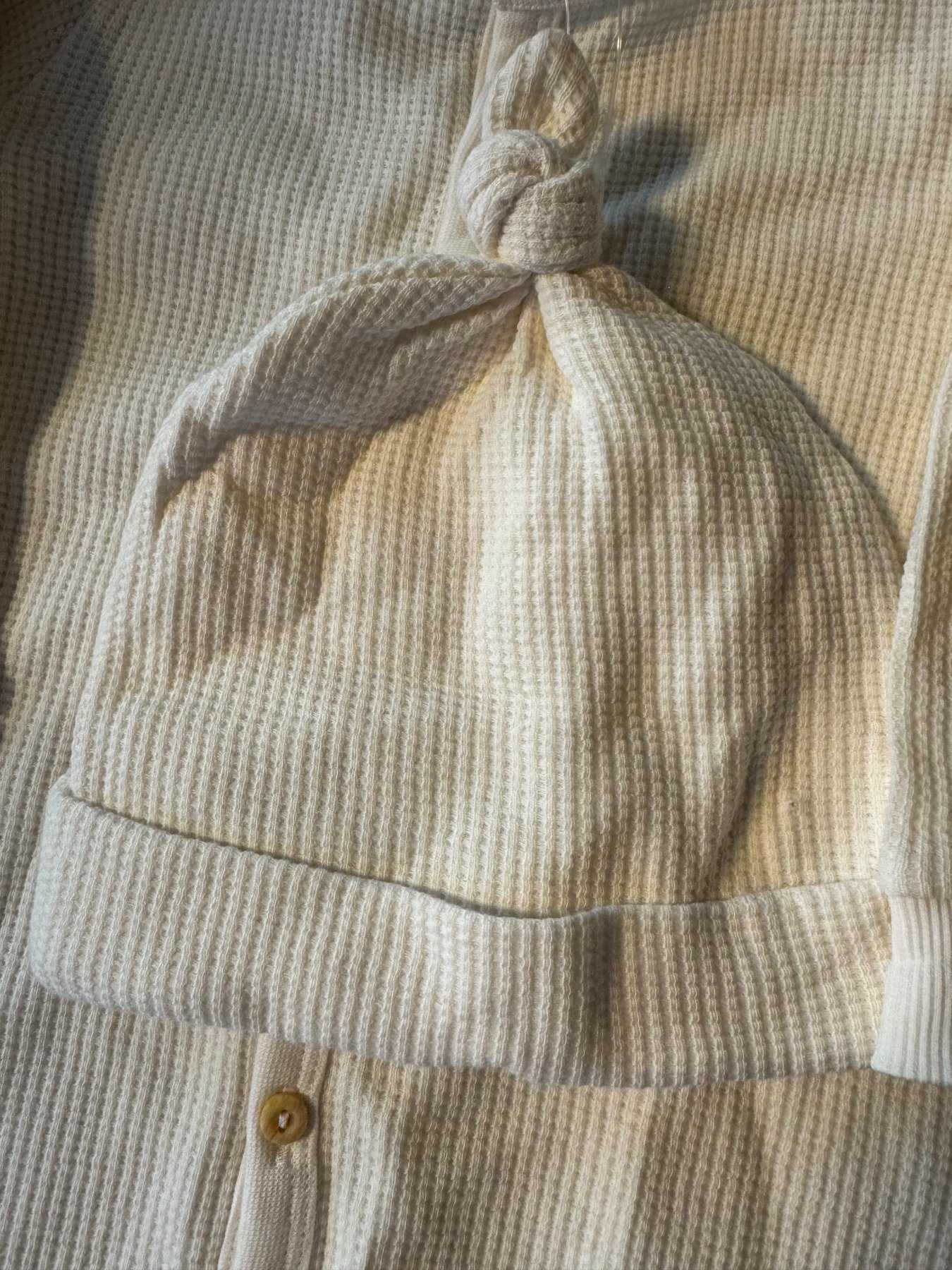 Material: Mütze: Obermaterial: 100% Baumwolle, Futter: 95% Baumwolle, 5% Elasthan; Strampler: 100% Baumwolle
