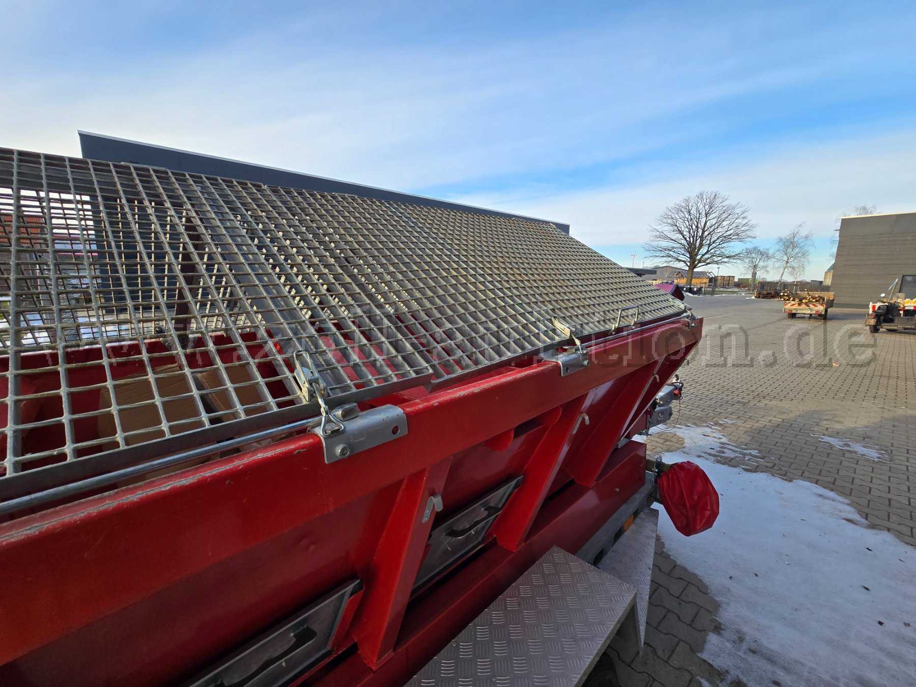Zustand und bekannte Schäden: Bandhaltesystem ist Überholungsbedürftig. Befestigung der Walzen und Walzenführung muss geprüft werden (Verschweißung / Sonstige Befestigungen); Batterie: tiefenentladen; Einwurfschutzgitter: vorne beidseitig gering verbogen; Lackabschürfungen an den Oberkanten des Streuers / Behälters, sowie ein paar kleine Dellen an den Seitenwänden; Flugrost am Sandpacker (Heckbereich); leichte Verschmutzungen durch Sand
