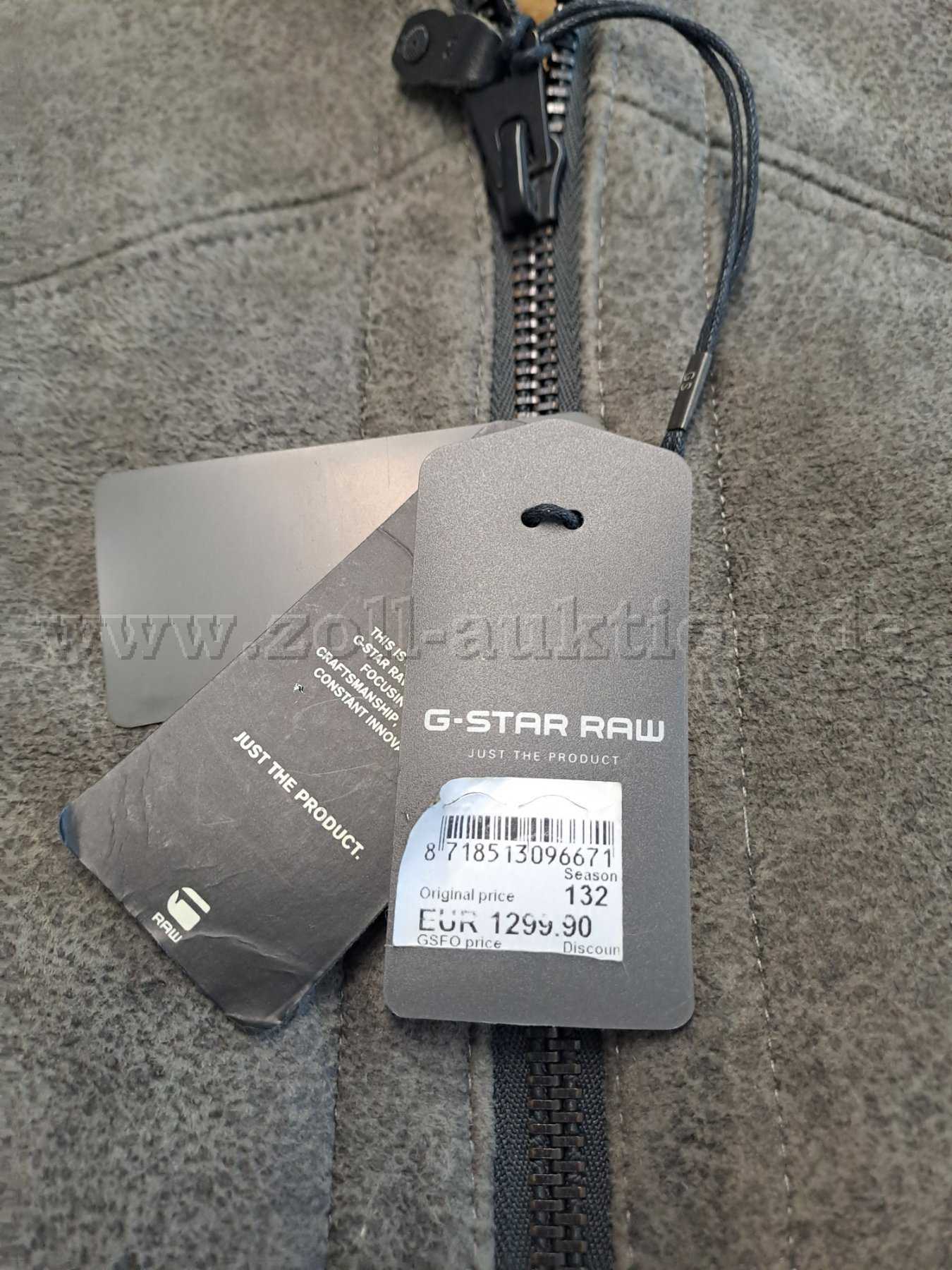 Zur Versteigerung wird eine Lederjacke des Herstellers G-Star Raw aus 100% Schafsleder angeboten.