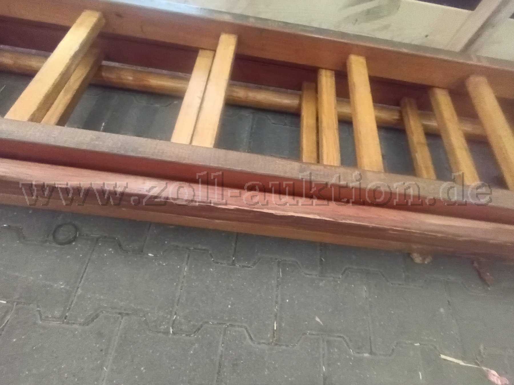 Hierzu ein Hinweis: Die Holz - Schiebeleiter der Feuerwehr wird ohne die jährlich vorgeschriebene Sicht- und Funktionsprüfung durch einen Sachkundigen angeboten. Daher wird dem Erwerber empfohlen, die Leiter im voll aufgebauten Zustand vor dem ersten Gebrauch auf ihre Stabilität hin zu überprüfen.